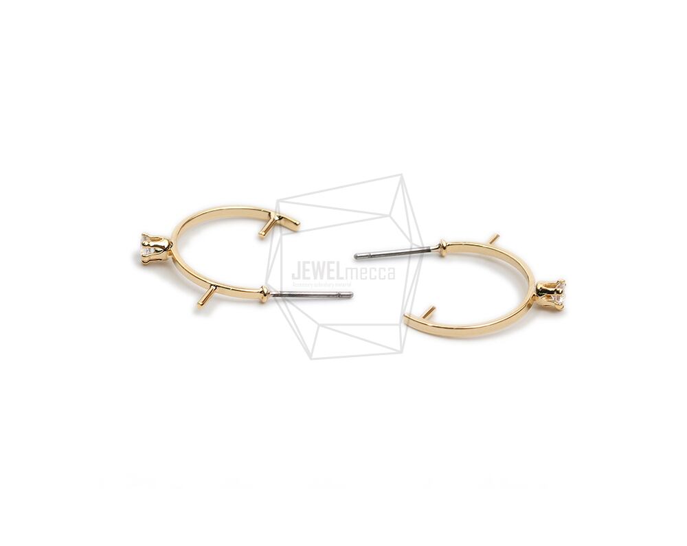 ERG-1949-G/2Pcs-Round Ear Post/ 16mm x 20mm /Gold Plated over Brass.Stainless Post
