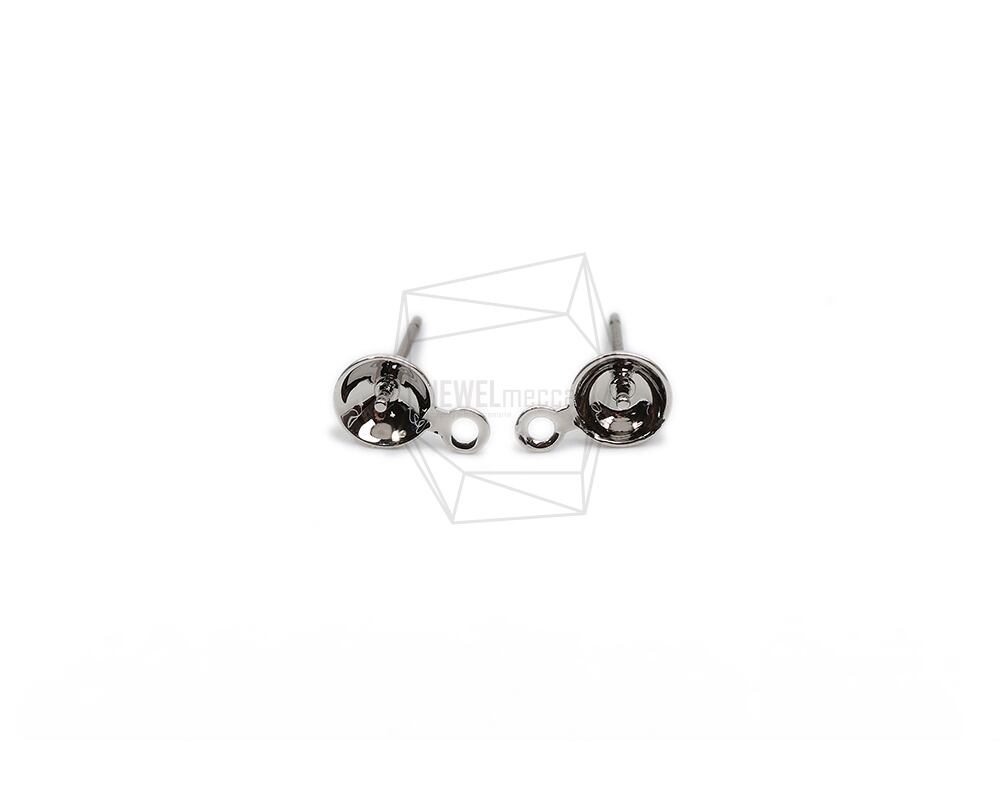ERG-1953-R/4Pcs-Round Cup Earring Post/ 6mm x 6mm /Rhodium Plated over Brass,Titanium post