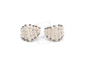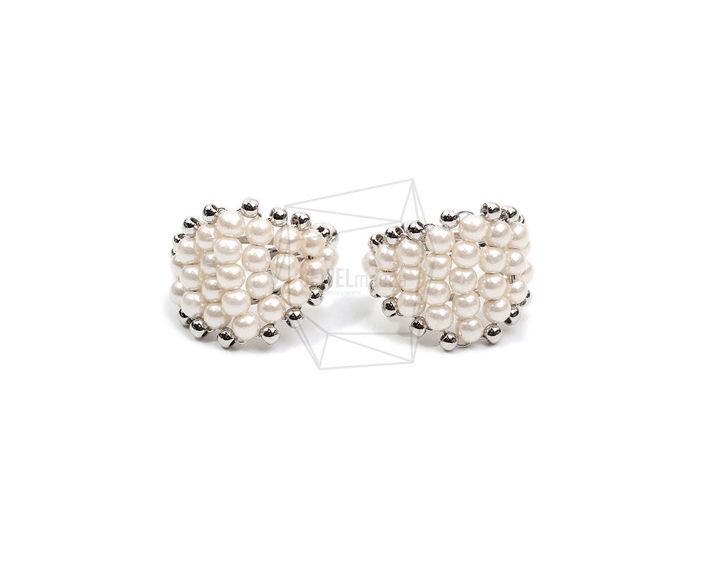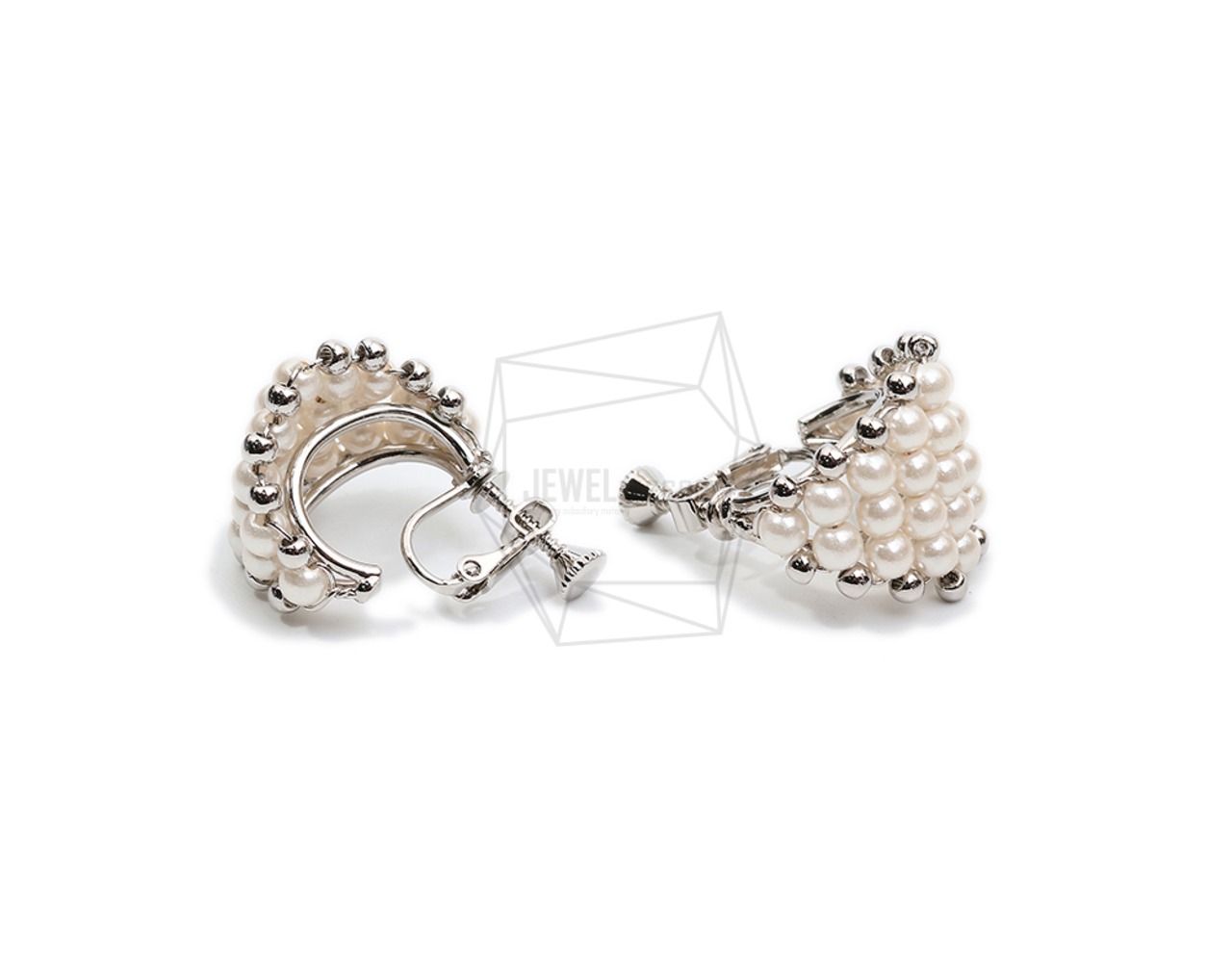 ERG-1954-R/2PCS/Rhombus Clip-On Earring/20mm X 23mm/Rhodium Plated Over Brass.Imitation Pearl