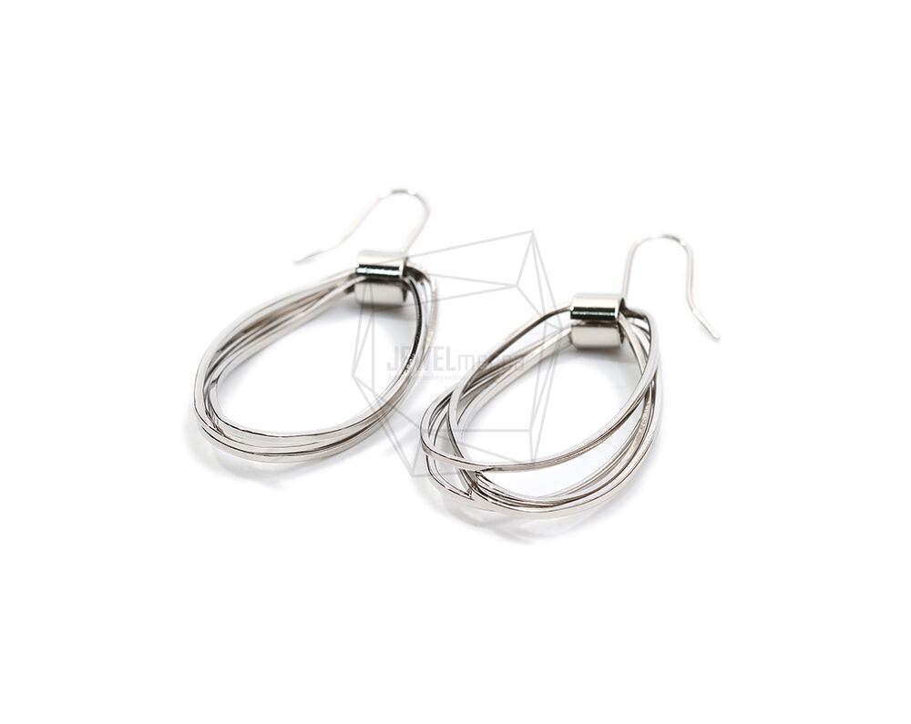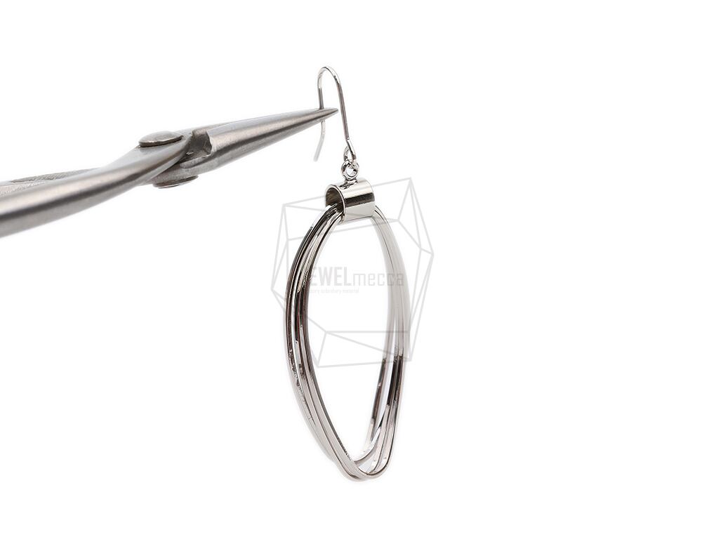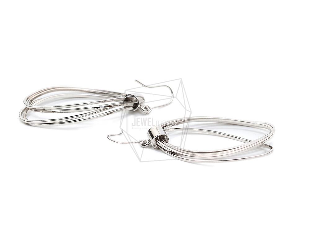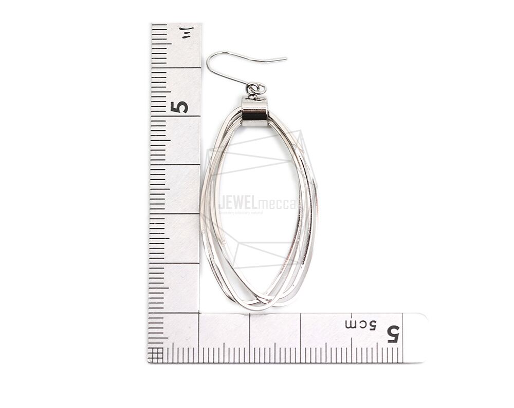 ERG-1961-R/2PCS/Round Ear Hook/22mm x 57mm/ Rhodium Plated over Brass