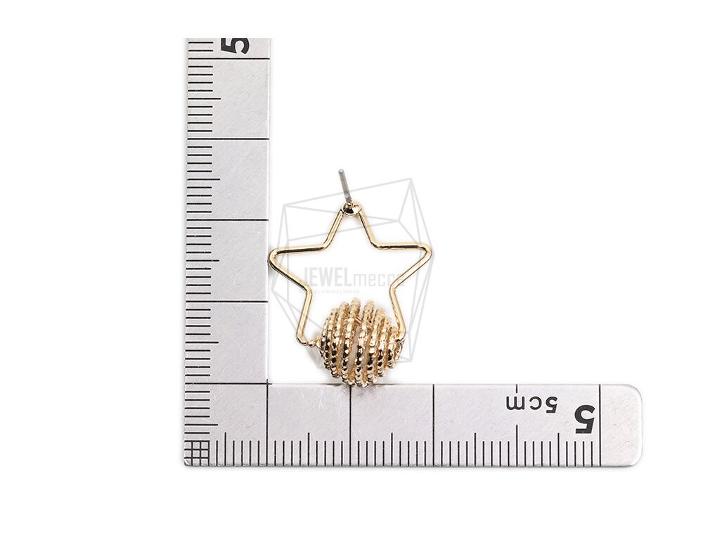 ERG-1962-G/2PCS/Star Earring Post/20mm x 22mm/Gold Plated over Brass/Titanium post