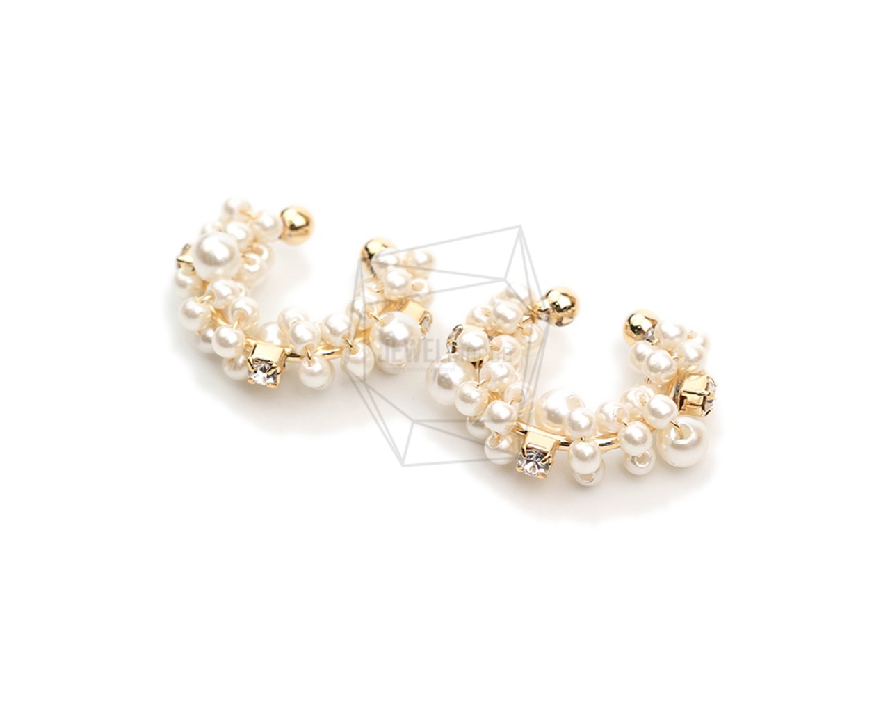 ERG-1972-G/2PCS/Round Earcuffs Earrings/23mm X 27mm/Gold Plated Over Brass,Imitation pearl