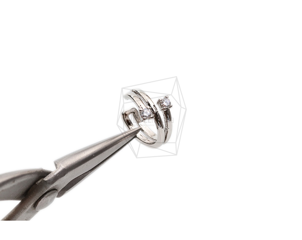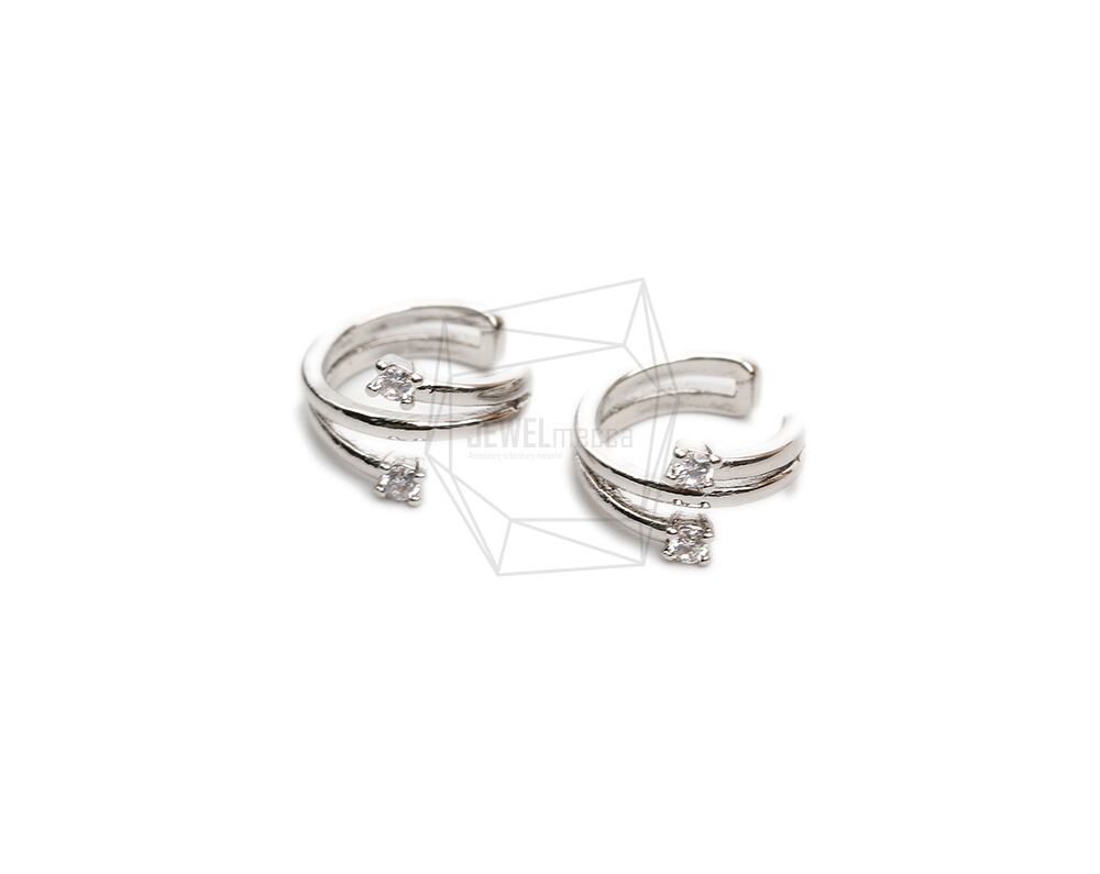 ERG-1973-R/2PCS/Double Earcuffs Earrings/14mm X 15mm/Rhodium Plated Over Brass,CZ