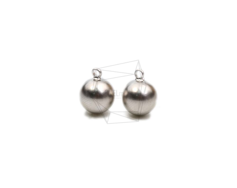 PDT-2524-MR/2PCS/Ball Pendant /10mm/Matte Rhodium Plated over Brass