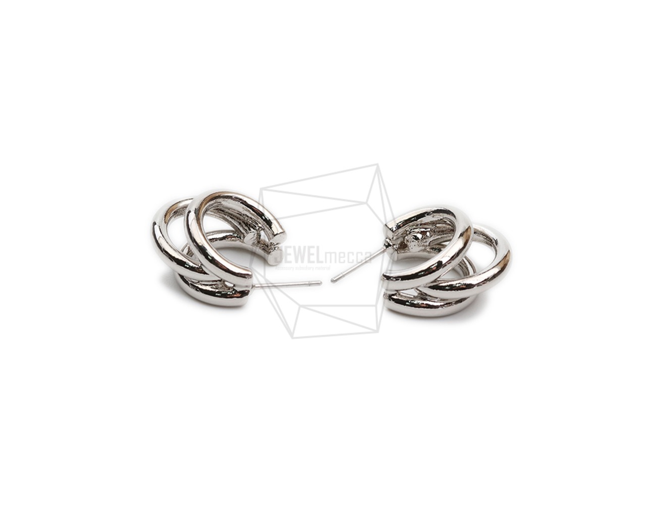 ERG-1989-R/2PCS/Triple round Post Earring/15mm X 17mm/Rhodium Plated Over Brass,Stainless Post