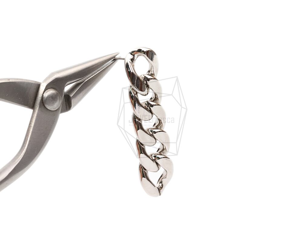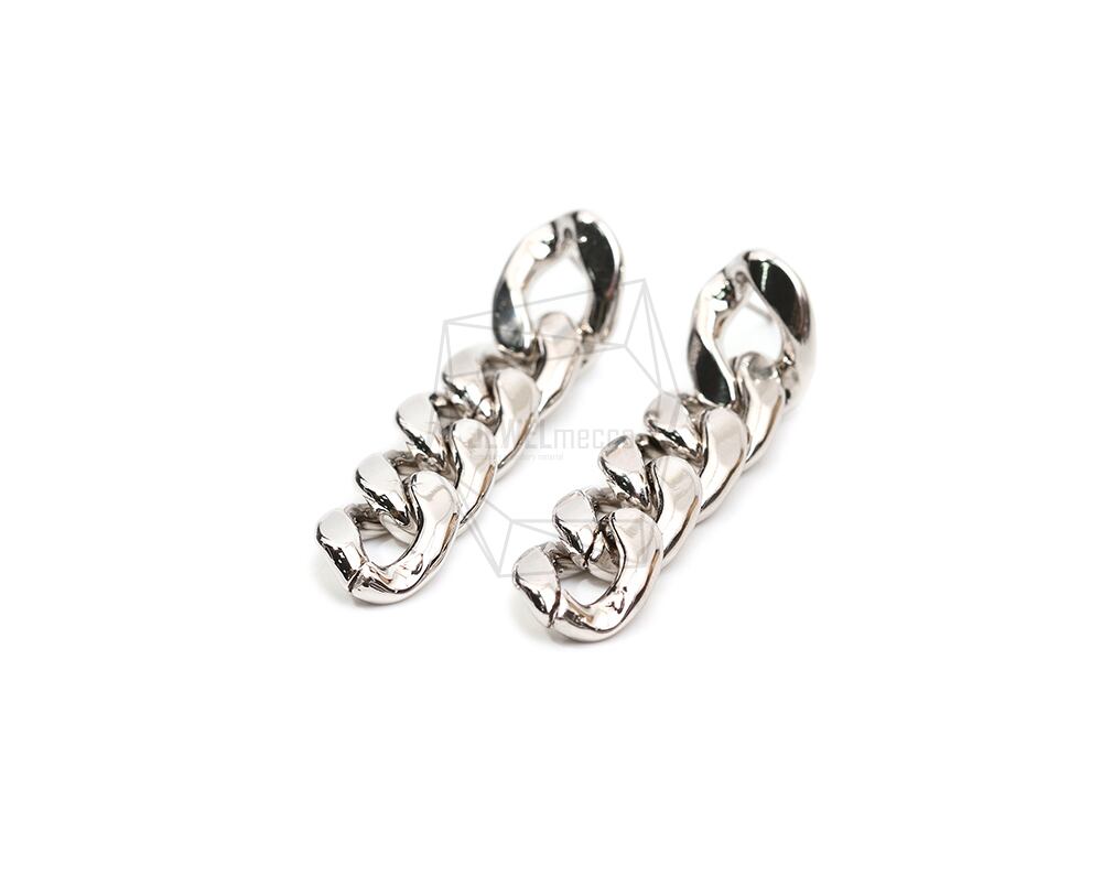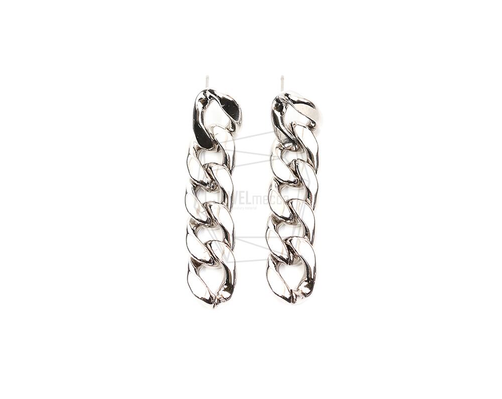 ERG-1968-R/2PCS/Chain Link Post Earring/10mm X 45mm/Rhodium Plated Over Brass , Titanium post