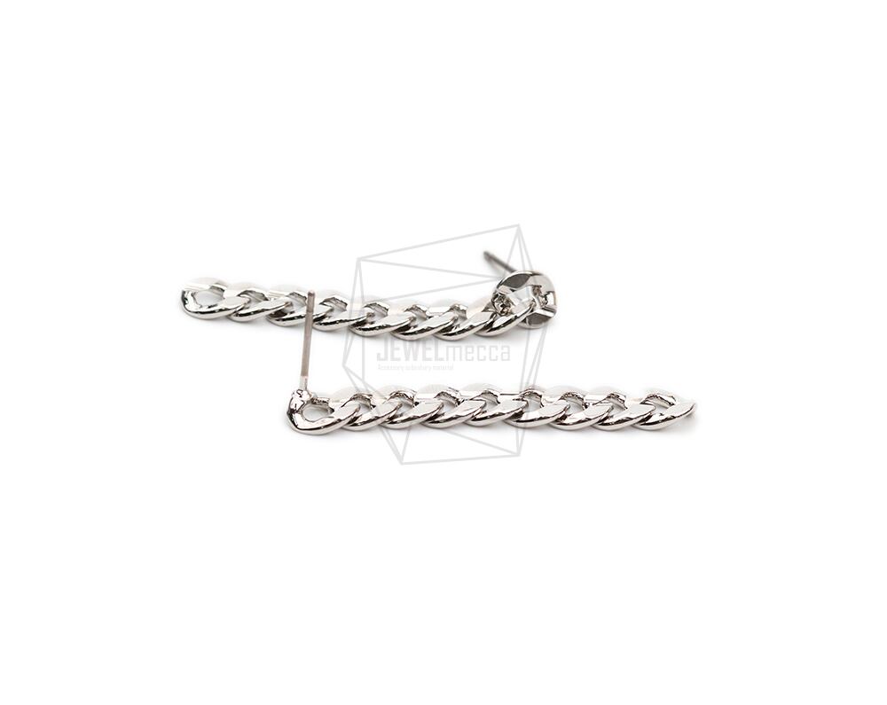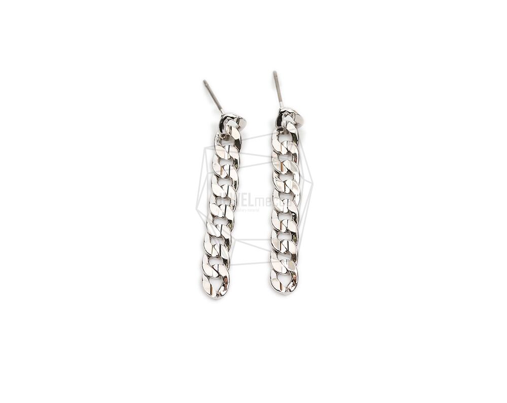 ERG-1970-R/2PCS/Chain Link Post Earring/5mm X 35mm/Rhodium Plated Over Aluminum , Titanium post