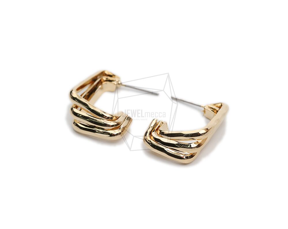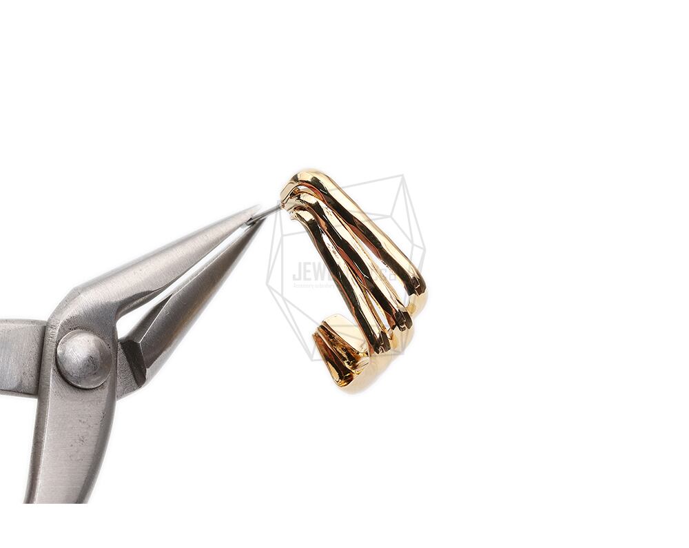 ERG-1994-G/2PCS/Triple round Post Earring/17mm X 24mm/Gold Plated Over Brass,Stainless Post