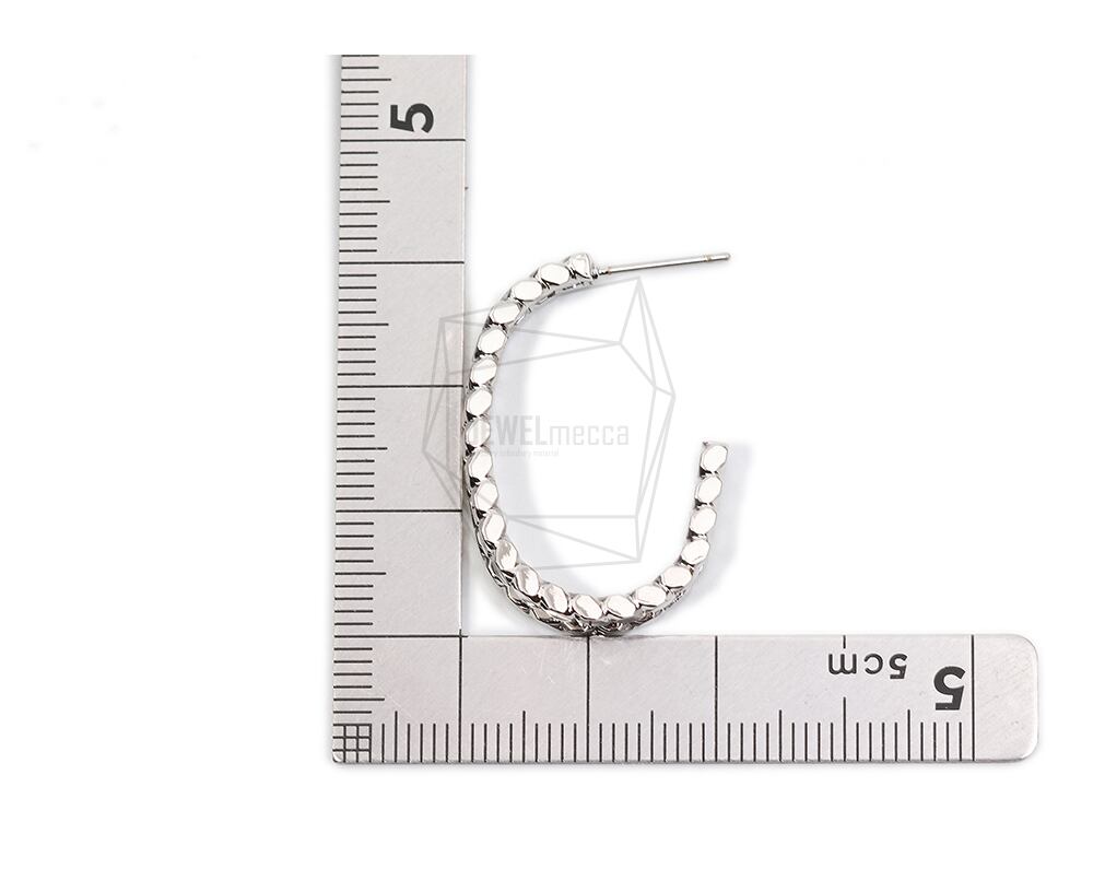 ERG-1995-R/2PCS/Double Round Post Earring/ 20mm X 30mm/Rhodium Plated Over Brass,Stainless Post