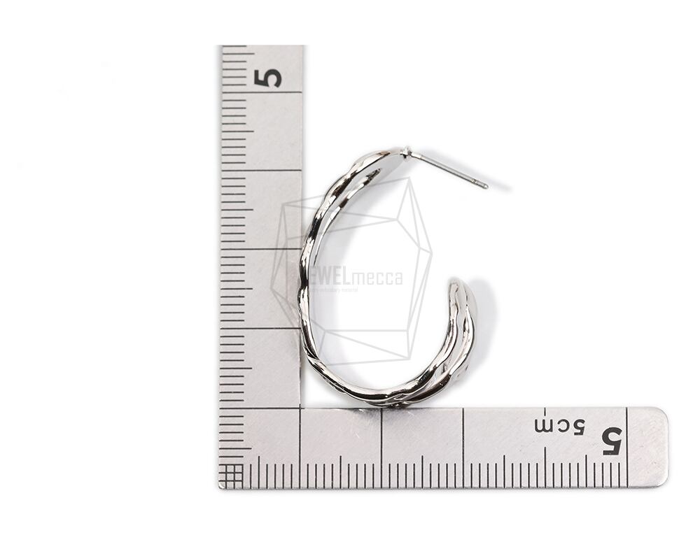 ERG-1996-R/2PCS/Double Round Post Earring/ 21mm X 32mm/Rhodium Plated Over Brass,Stainless Post