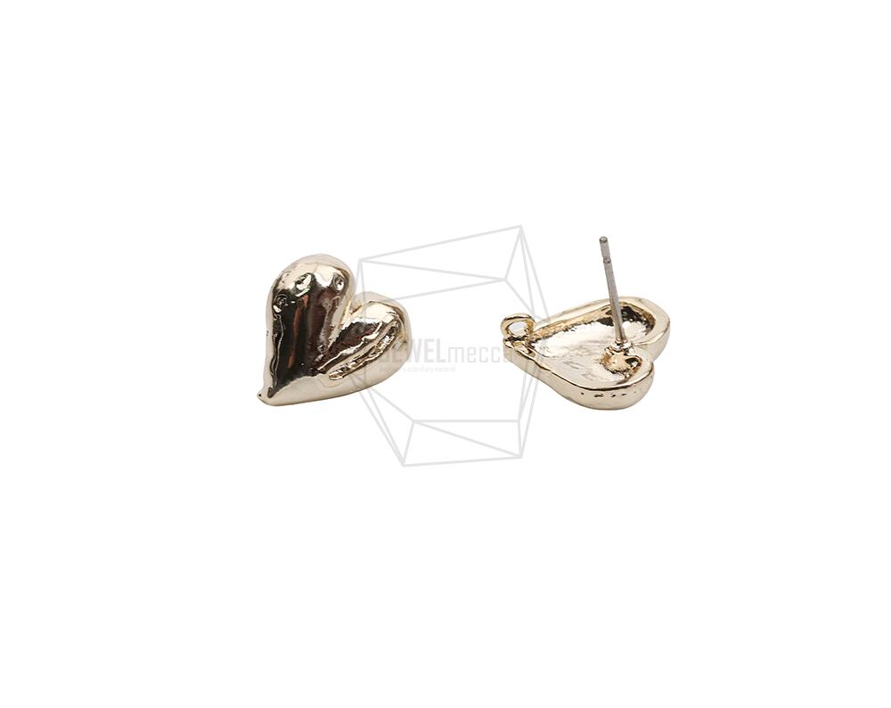 ERG-2004-G/2Pcs-heart Ear Post/ 13mm x 13mm/Gold Plated over Brass/Stainless Post