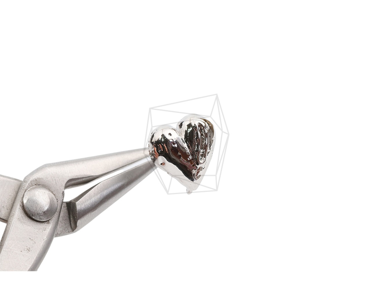 ERG-2004-R/2Pcs-heart Ear Post/ 13mm x 13mm/Rhodium Plated over Brass/Stainless Post