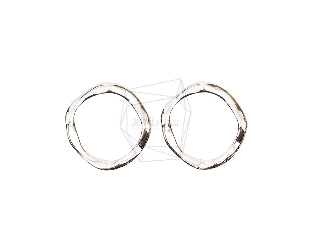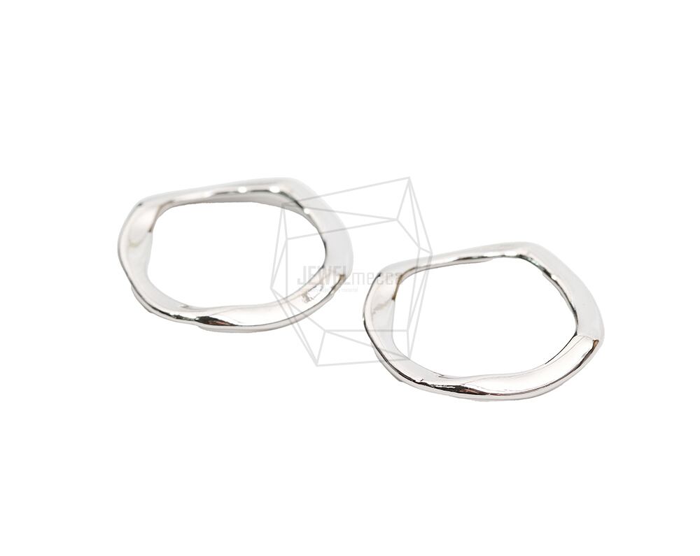 PDT-2535-R/4Pcs-Wave Round Pendant/ 25mm x 25mm/ Rhodium Plated Over Tin