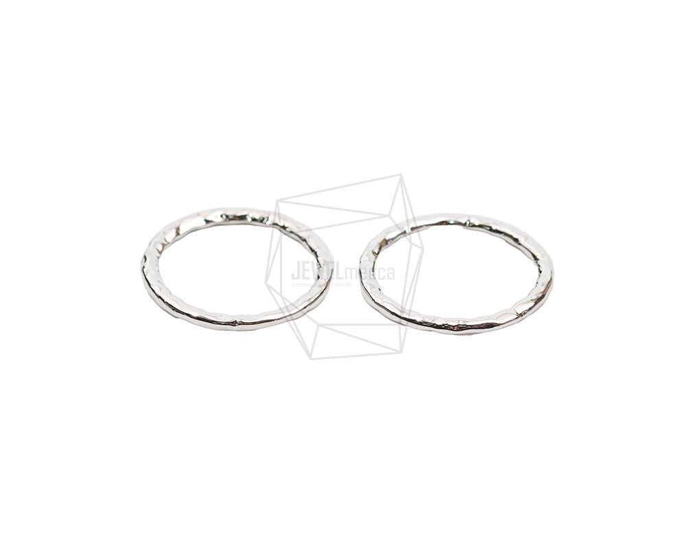 PDT-2536-R/4PCS/Hammered Round Pendant/18mm x 18mm/Rhodium Plated Over Tin