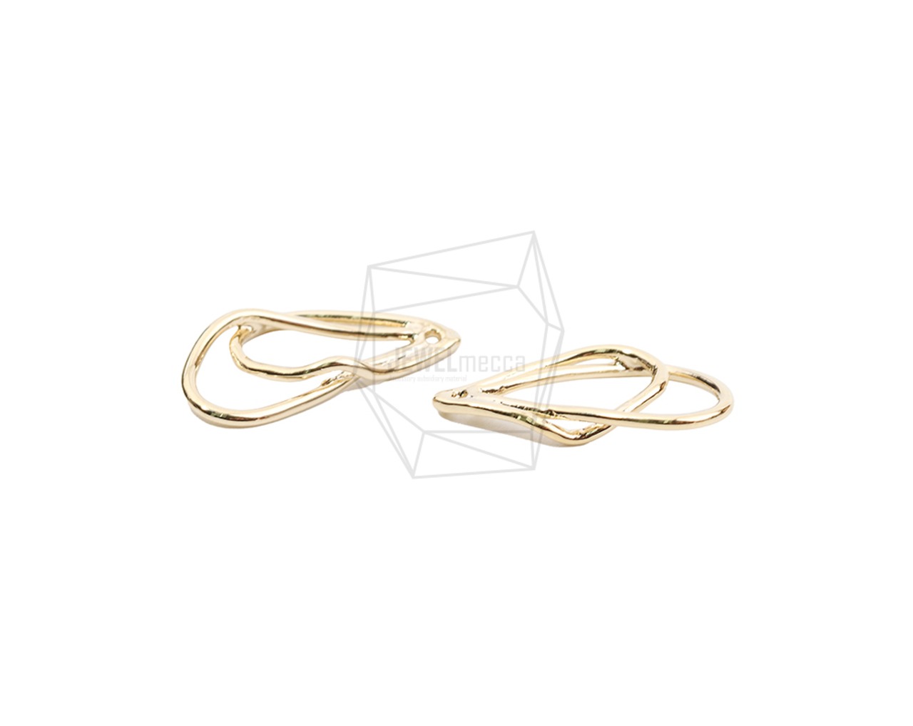 PDT-2537-G/4PCS/Oval Pendant/12mm x 25mm/Gold Plated Over Tin