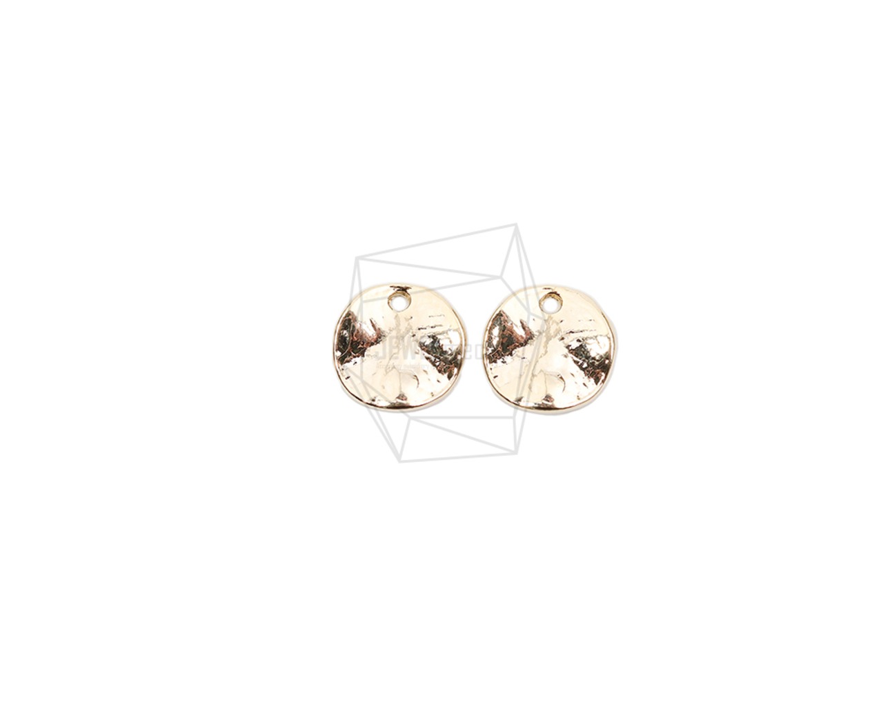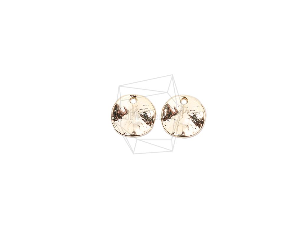 PDT-2546-G/4PCS/Hammered Round Pendant/10mm x 10mm/Gold Plated Over Tin