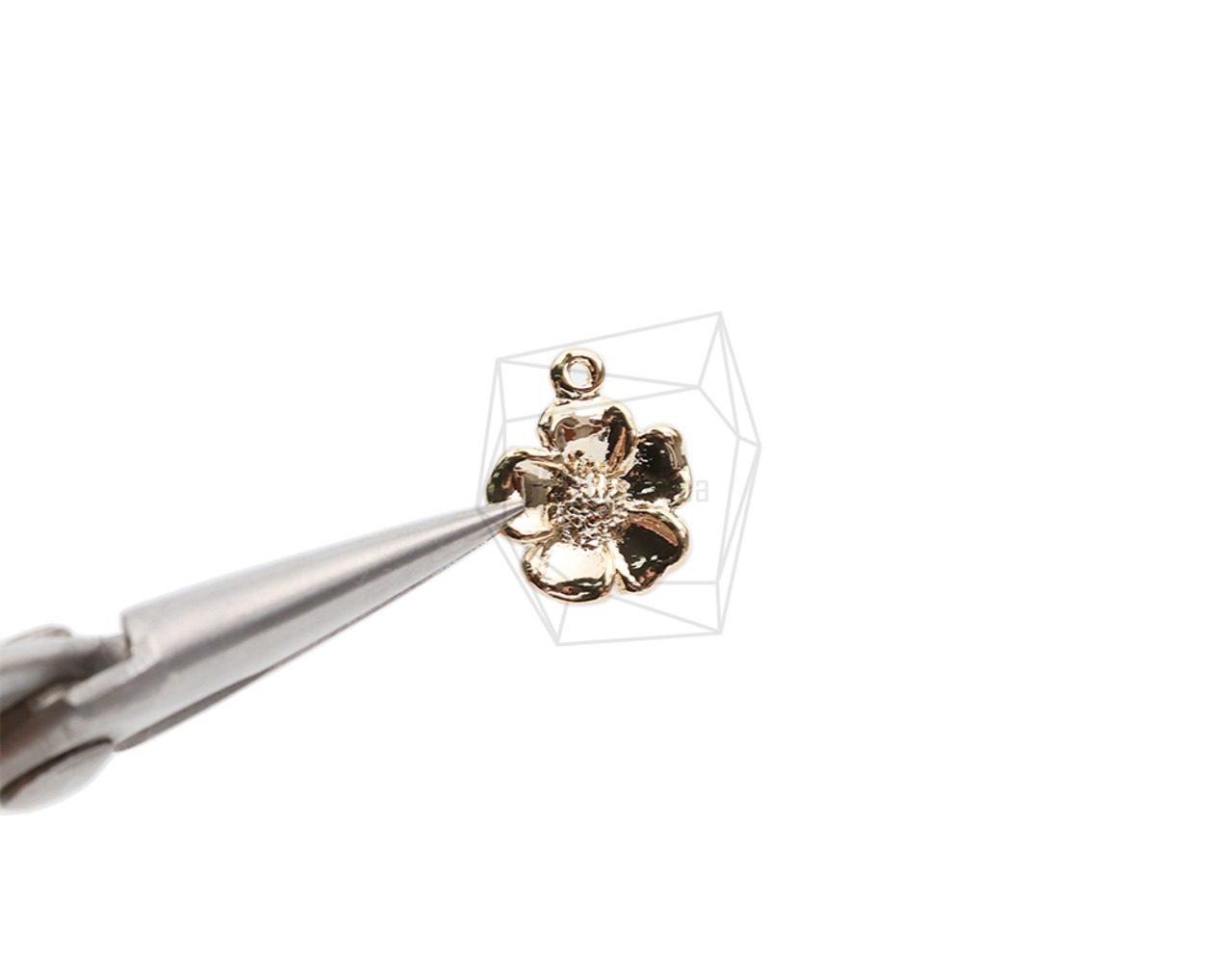 PDT-2547-G/4PCS/Flower Pendant/10mm x 12mm/Gold Plated Over Tin