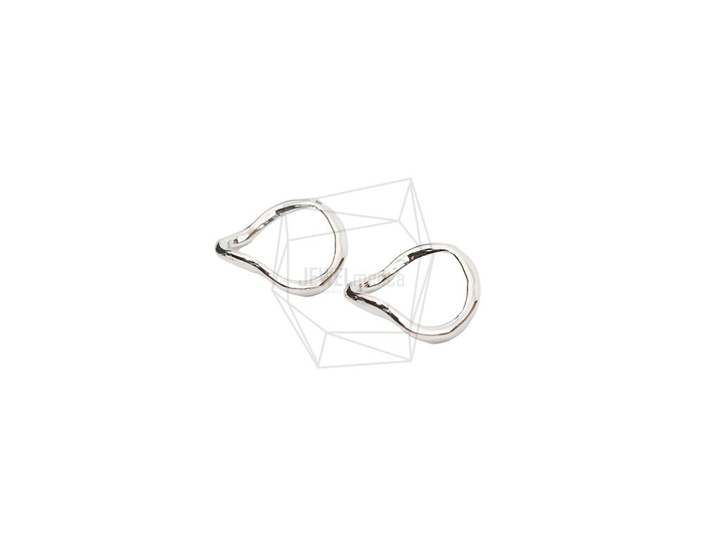 PDT-2552-R/4Pcs-Wave Round Pendant/ 11mm x 13mm/ Rhodium Plated Over Tin
