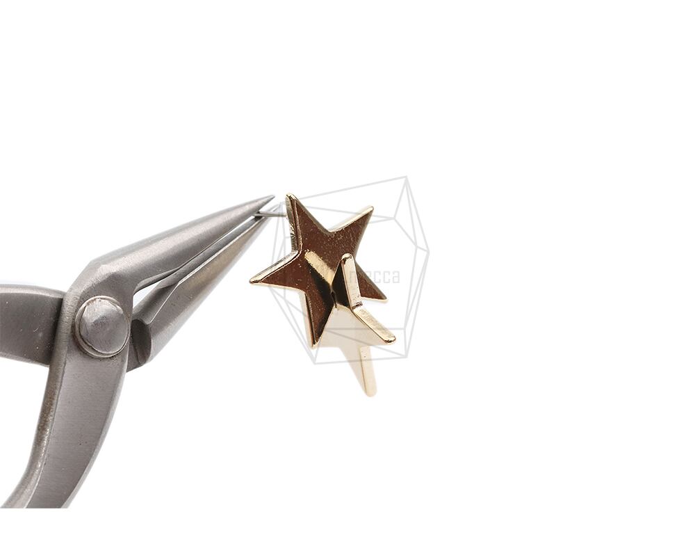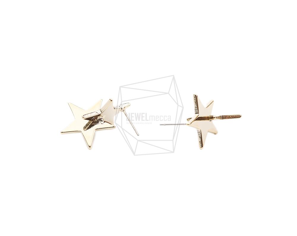 ERG-2005-G/2PCS/Double Star Earring Post/17m x 24mm/Gold Plated over Brass/Titanium Post