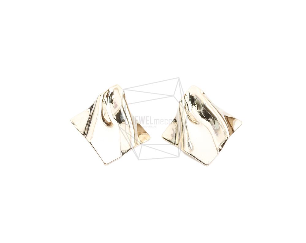ERG-2007-G/2PCS/Shield Post Earring/24mm X 27mm/Gold Plated Over Brass