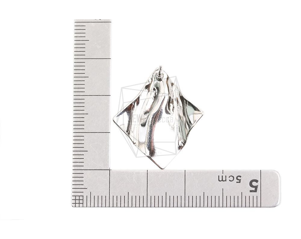 ERG-2007-R/2PCS/Shield Post Earring/24mm X 27mm/Rhodium Plated Over Brass
