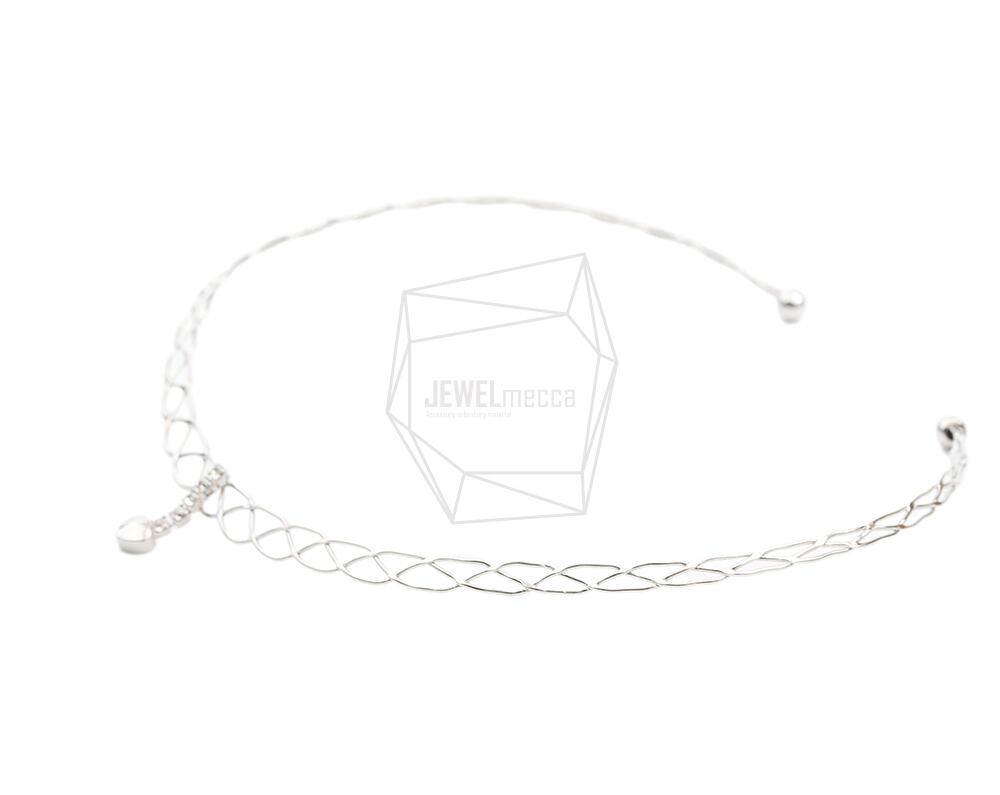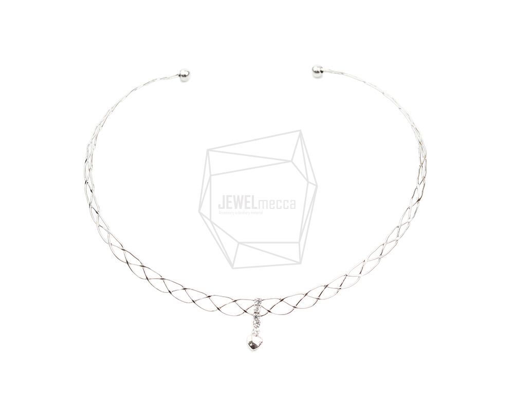 PDT-2554-R/1PCS-Round Choker Collar Necklace 14.5inch and Adjustable and easy to put on /Rhodium Plated over brass