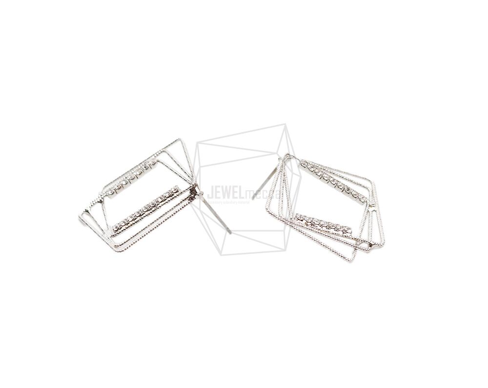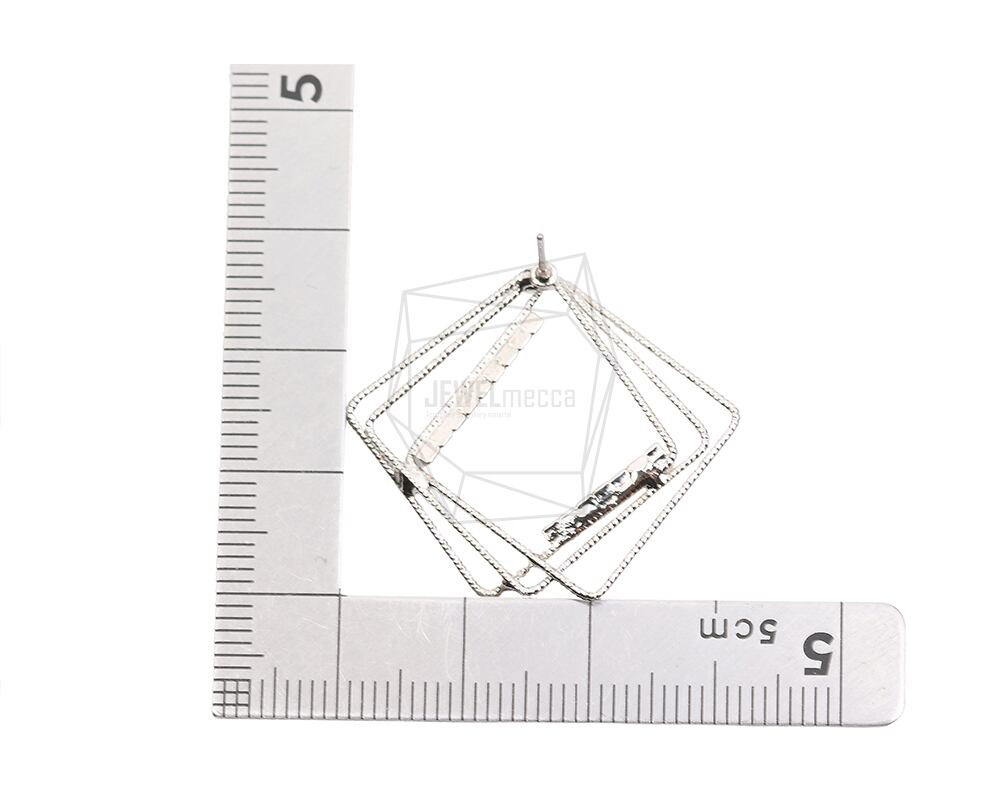 ERG-2018-R/2PCS/Square Post Earring/27mm X 32mm/Rhodium Plated Over Brass,Stainless Post