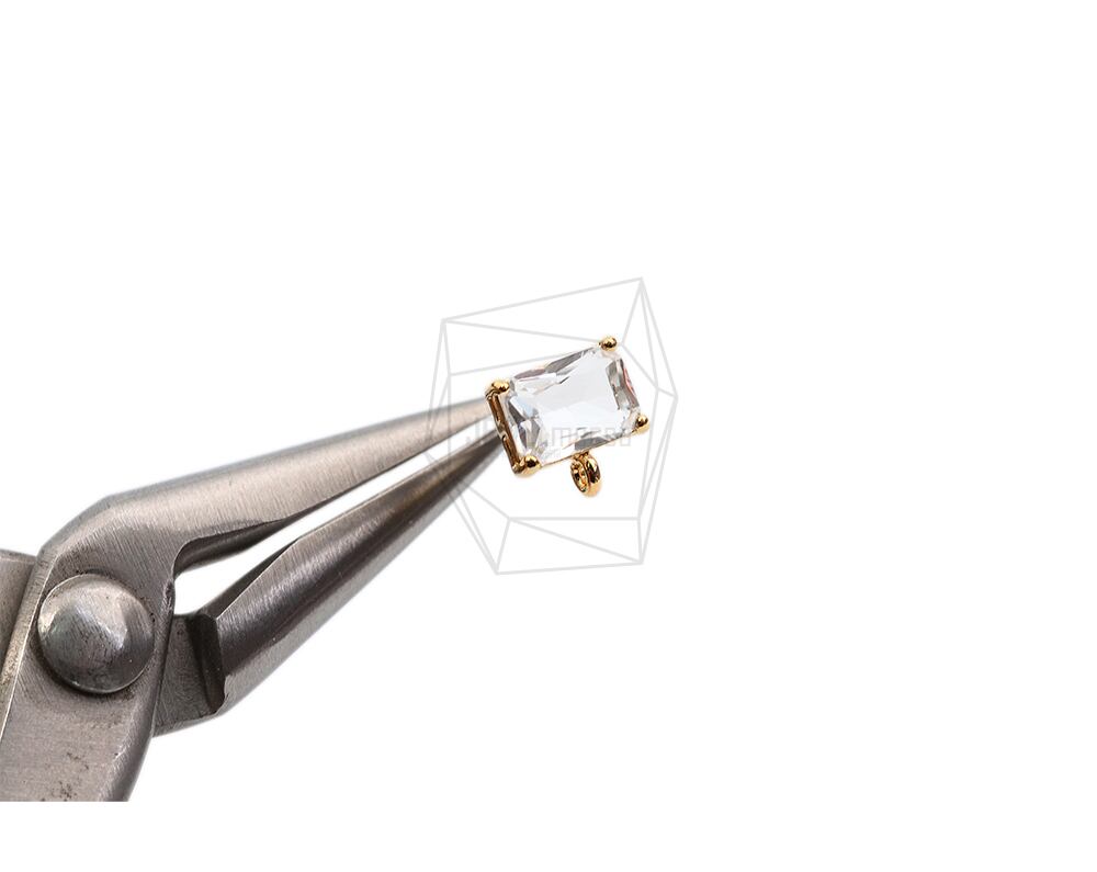 ERG-2019-G/2Pcs-Square Glass Post Earring/7.7mmx7.8mm /Gold Plated over Brass