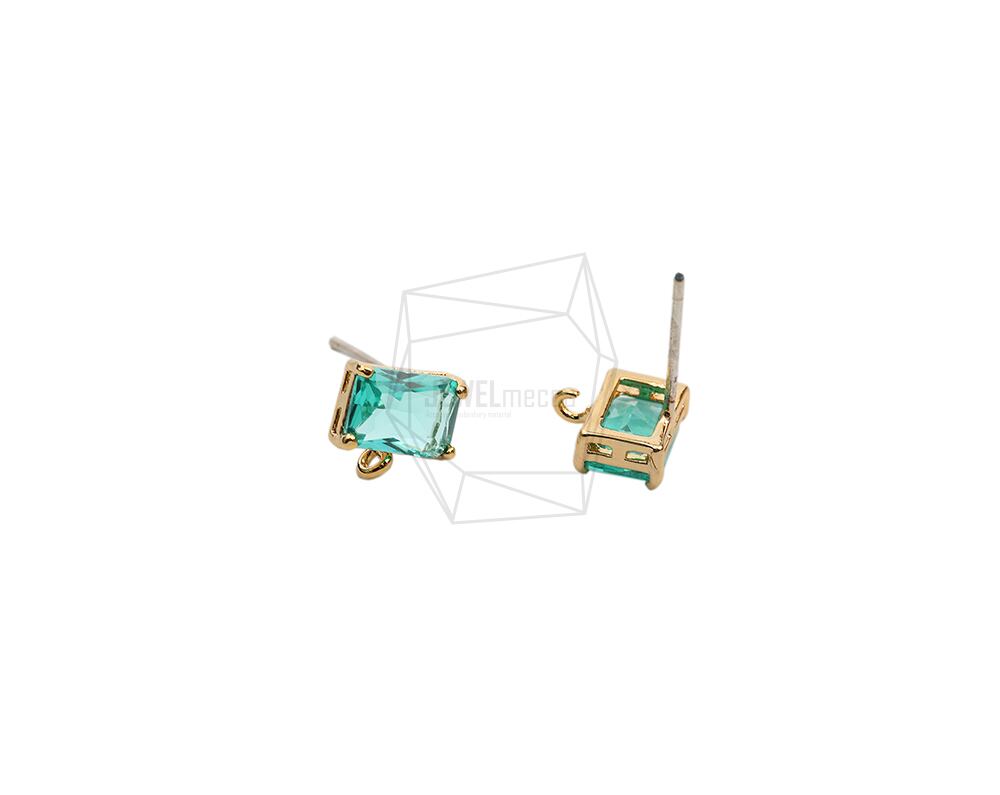 ERG-2020-G/2Pcs-Square Glass Post Earring/7.7mmx7.8mm /Gold Plated over Brass
