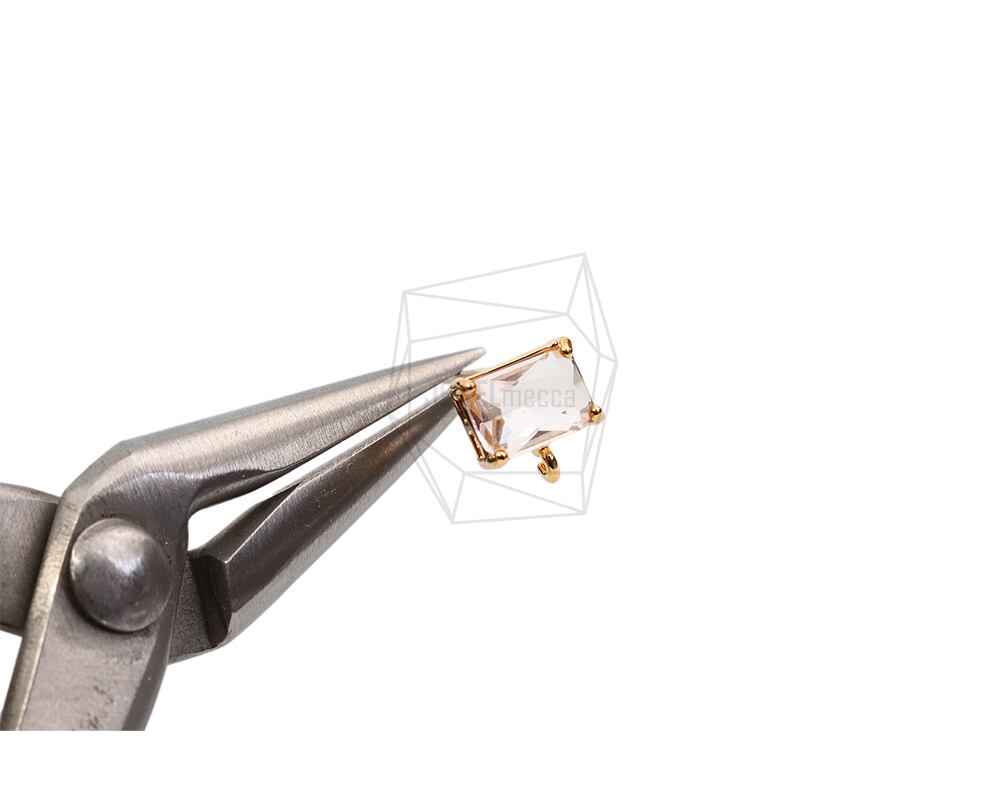 ERG-2021-G/2Pcs-Square Glass Post Earring/7.7mmx7.8mm /Gold Plated over Brass