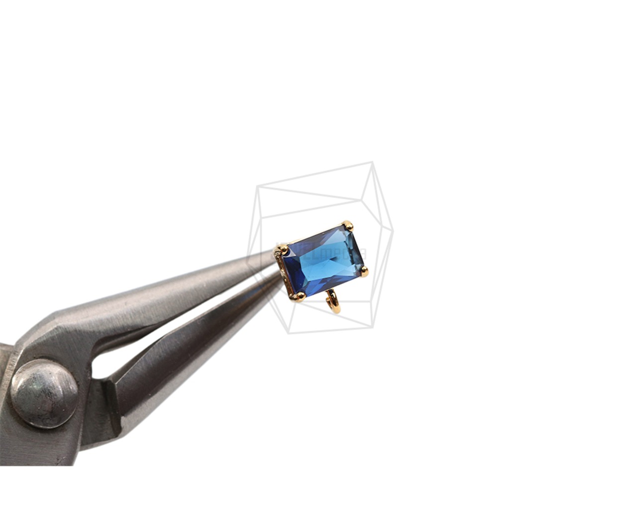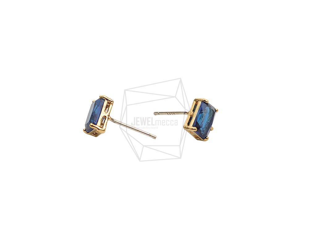 ERG-2022-G/2Pcs-Square Glass Post Earring/7.7mmx7.8mm /Gold Plated over Brass