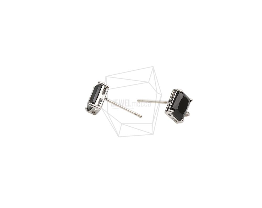 ERG-2024-R/2Pcs-Square Glass Post Earring/7.7mmx7.8mm /Rhodium Plated over Brass