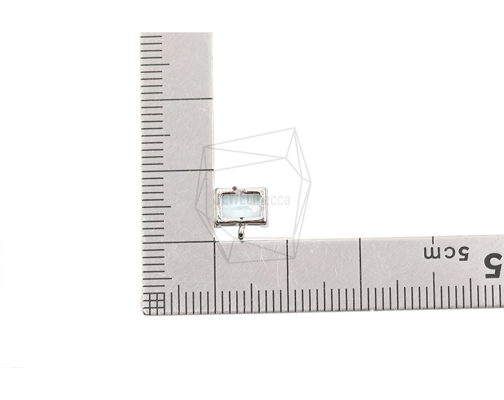 ERG-2025-R/2Pcs-Square Glass Post Earring/7.7mmx7.8mm /Rhodium Plated over Brass