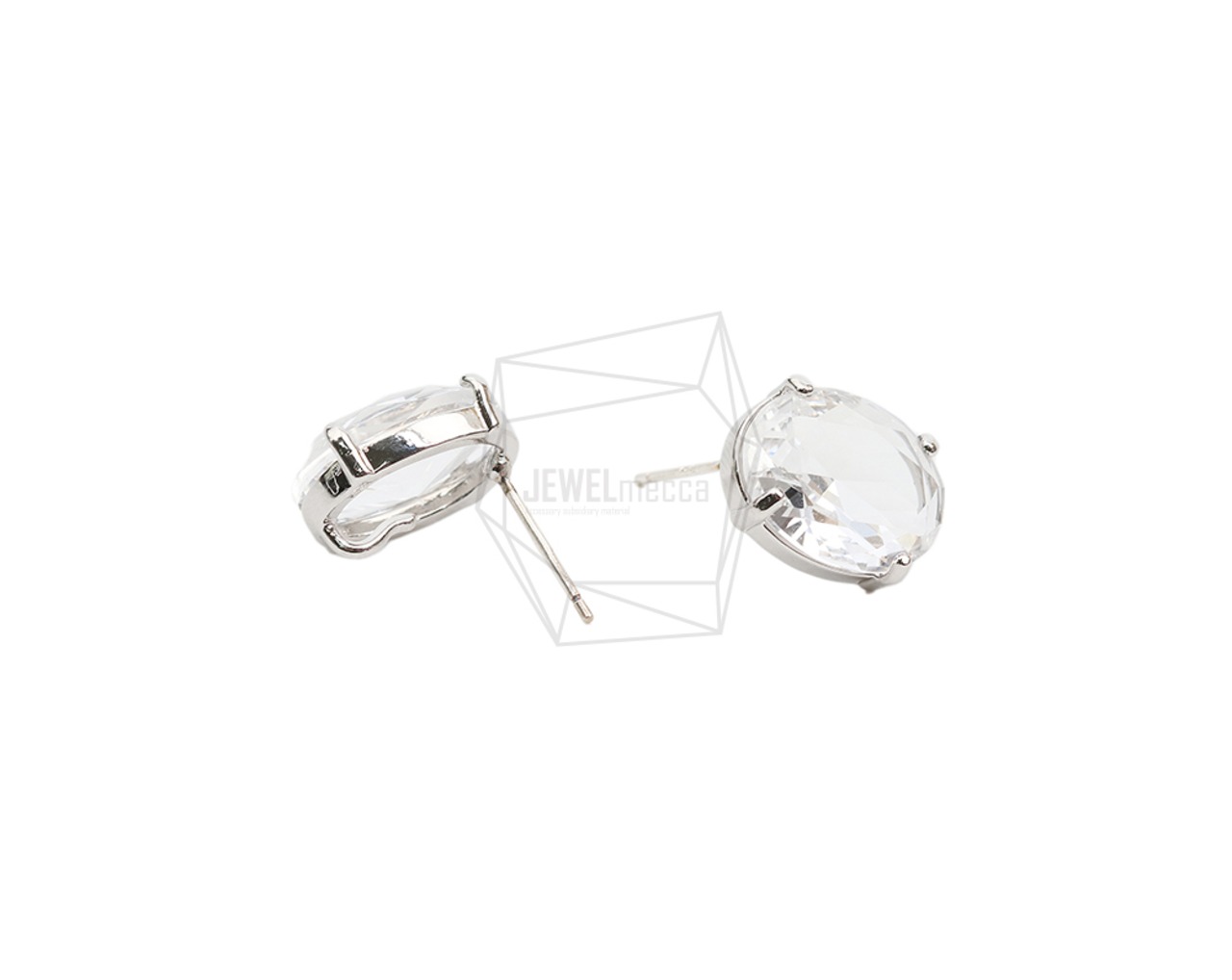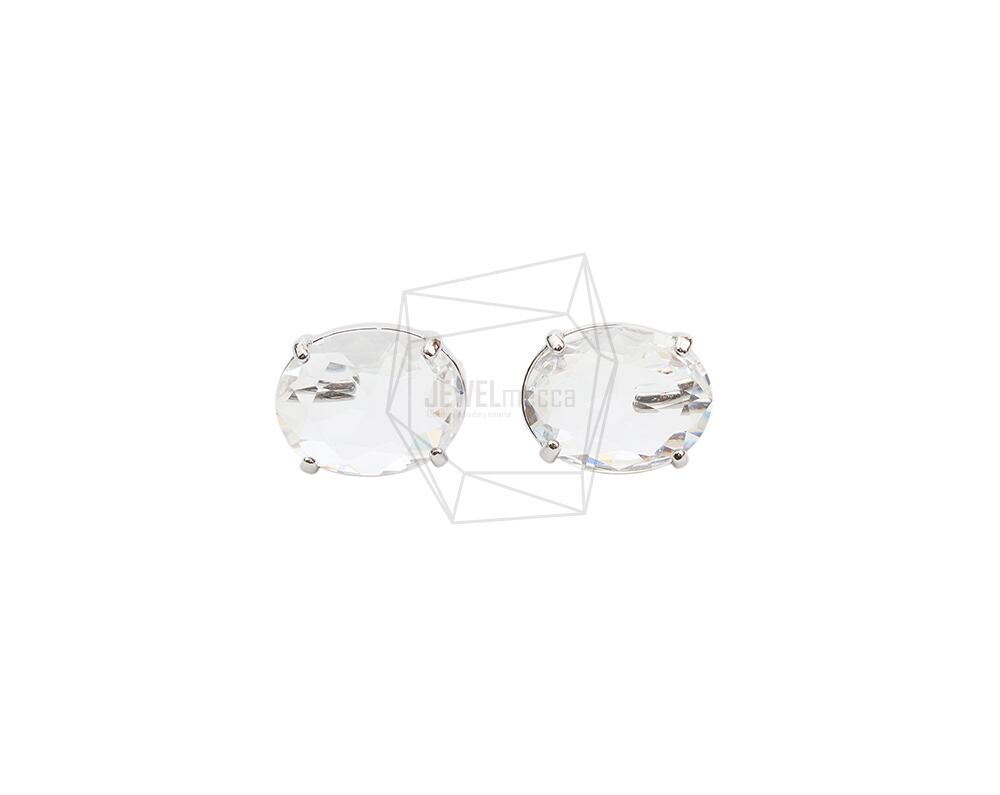 ERG-2026-R/2Pcs-Round Glass Post Earring/11mmx14mm /Rhodium Plated over Brass