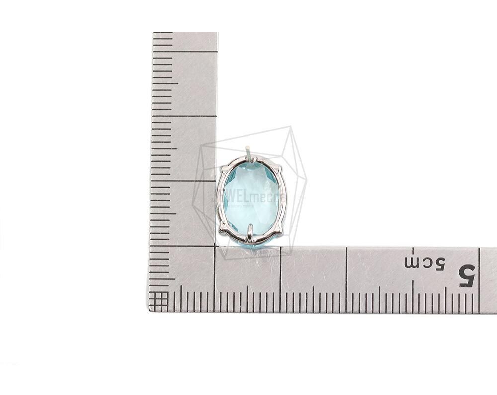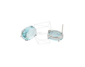 ERG-2027-R/2Pcs-Round Glass Post Earring/11mmx14mm /Rhodium Plated over Brass