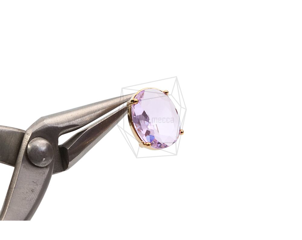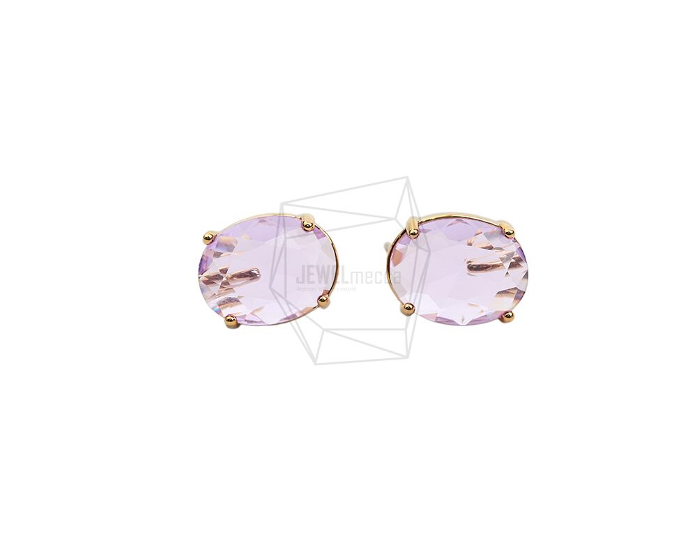 ERG-2029-G/2Pcs-Round Glass Post Earring/11mmx14mm /Gold Plated over Brass