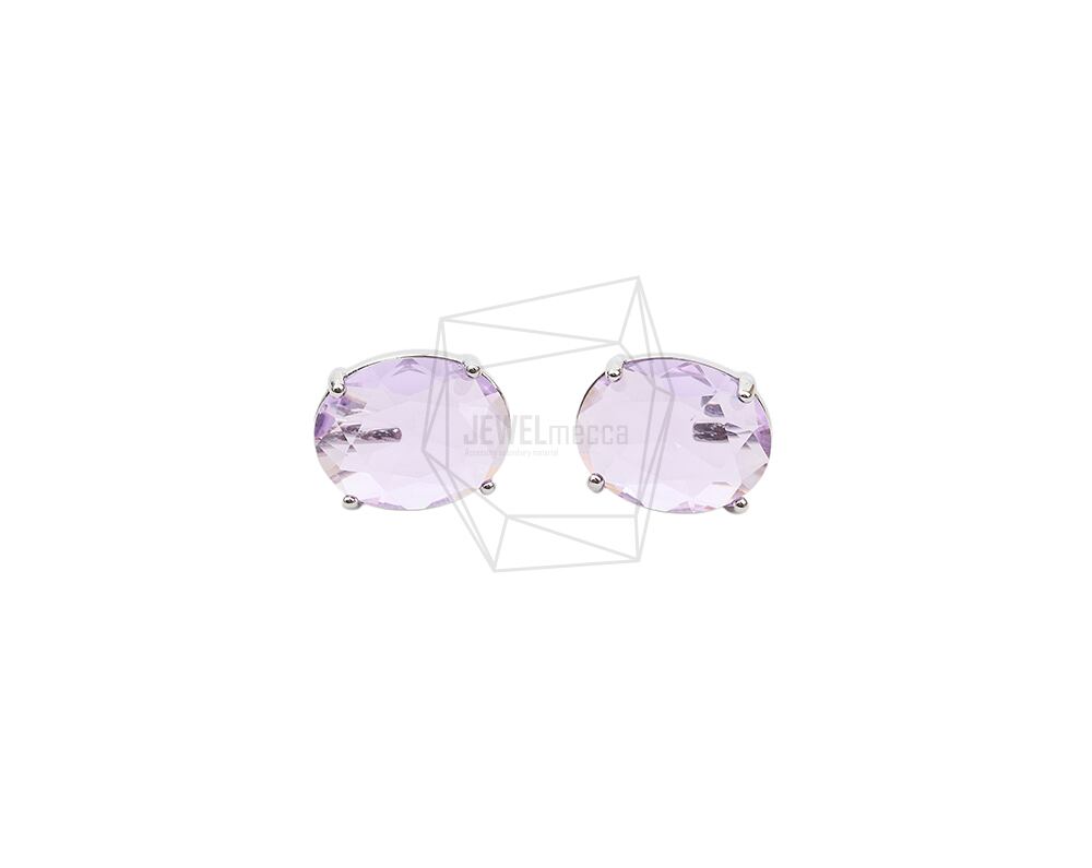 ERG-2029-R/2Pcs-Round Glass Post Earring/11mmx14mm /Rhodium Plated over Brass
