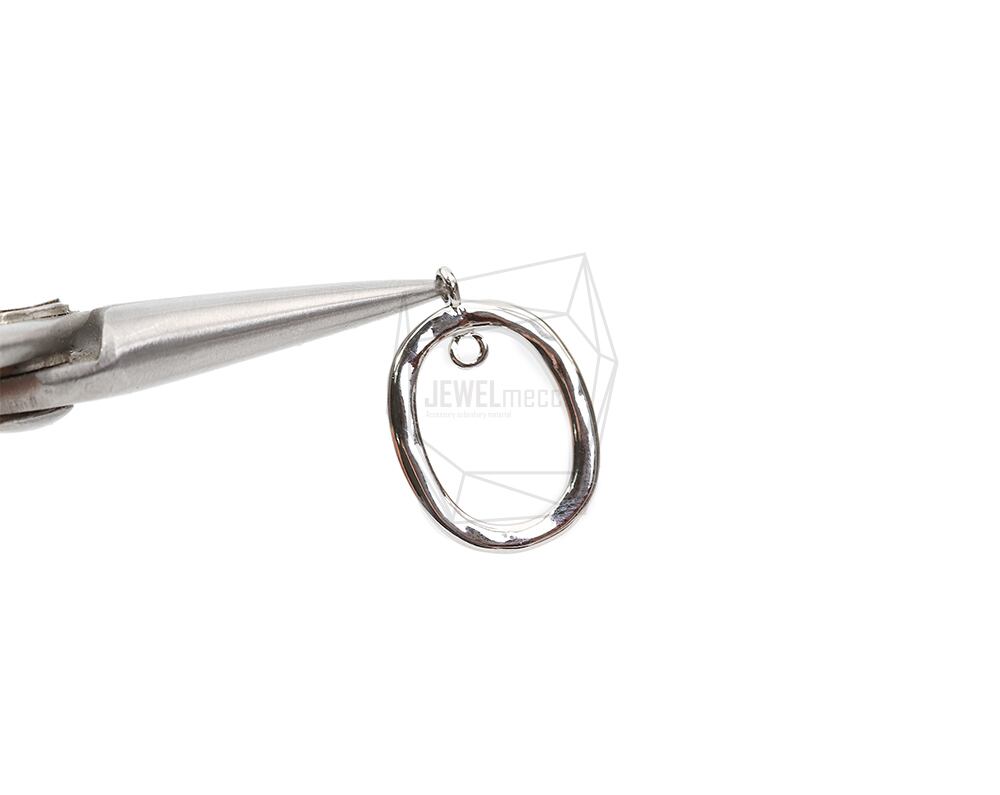 PDT-2560-R/2Pcs-Wave Round Pendant/ 13mm x 18mm/ Rhodium Plated Over Brass