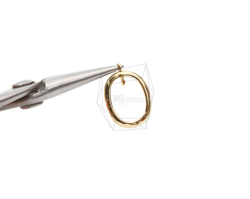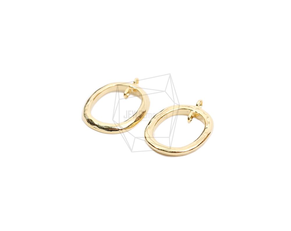 PDT-2563-G/2Pcs-Wave Round Pendant/ 13mm x 18mm/ Gold Plated Over Brass