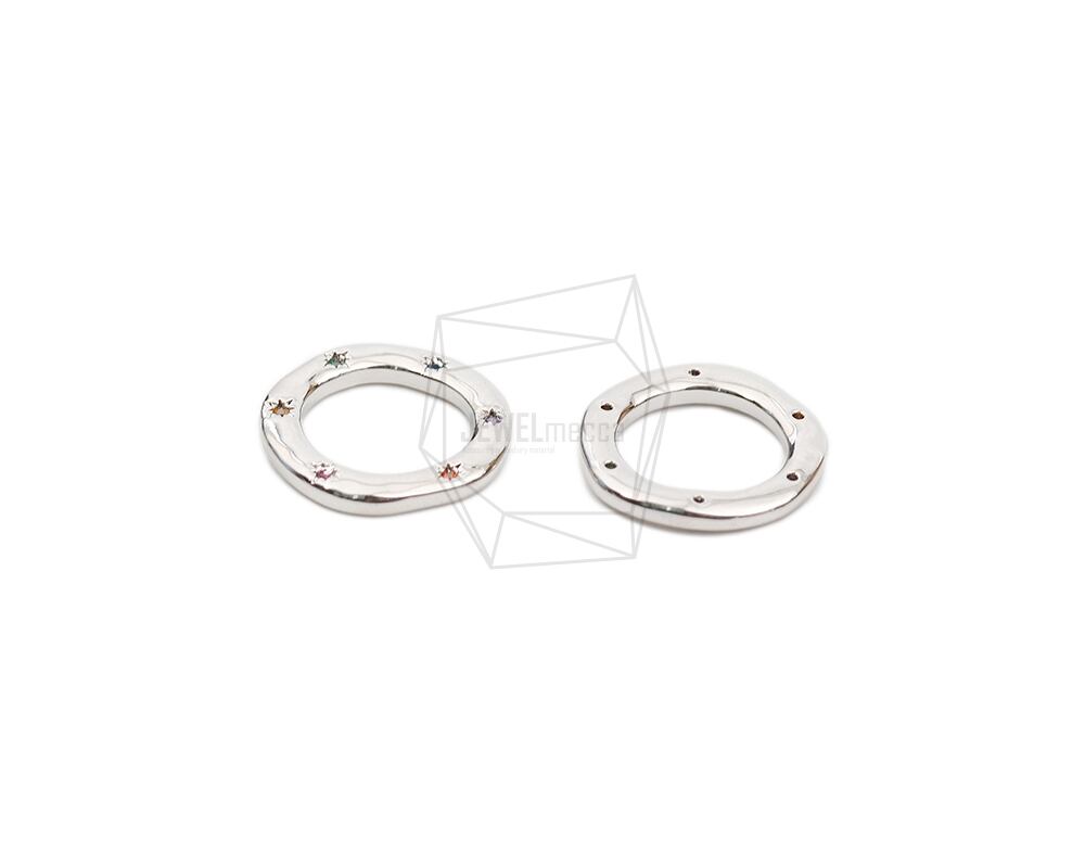 PDT-2565-R/2PCS/CZ Round Pendant/15mm X 15mm/ Rhodium Plated Over Brass