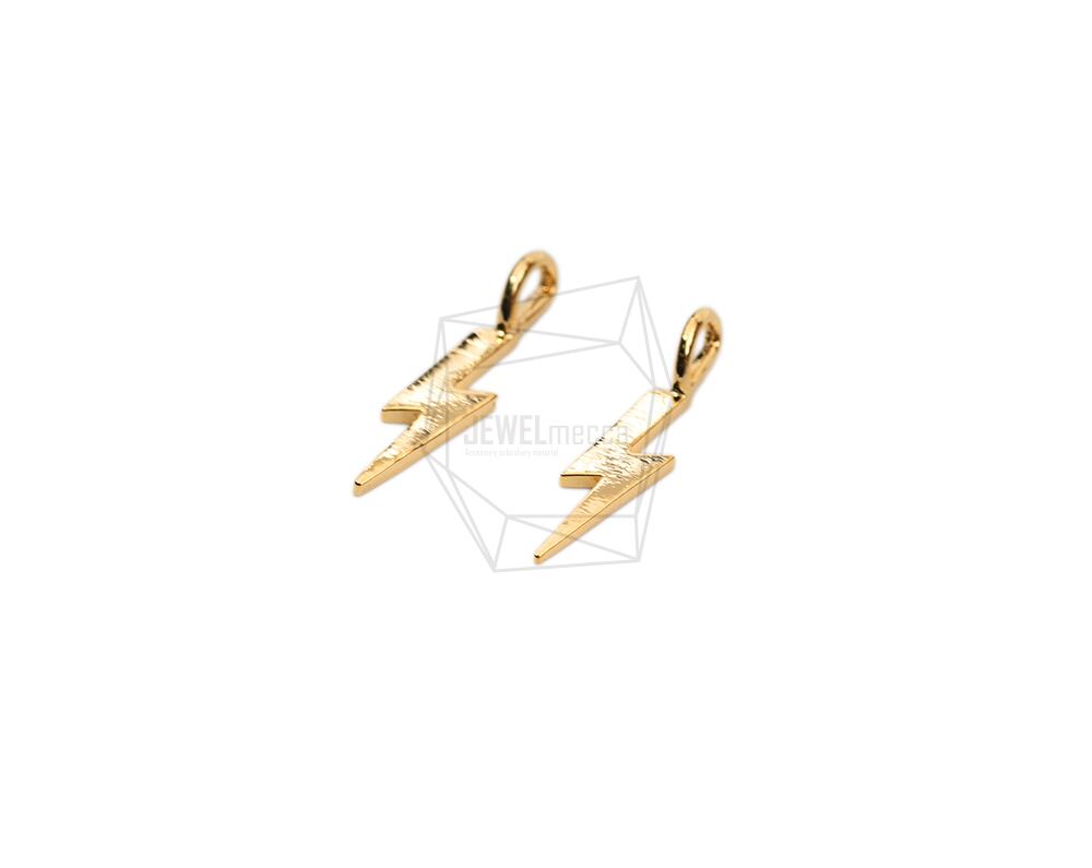 PDT-2588-G/2PCS/Lightning Pendant/4.3mm X 20mm/Gold Plated Over Brass