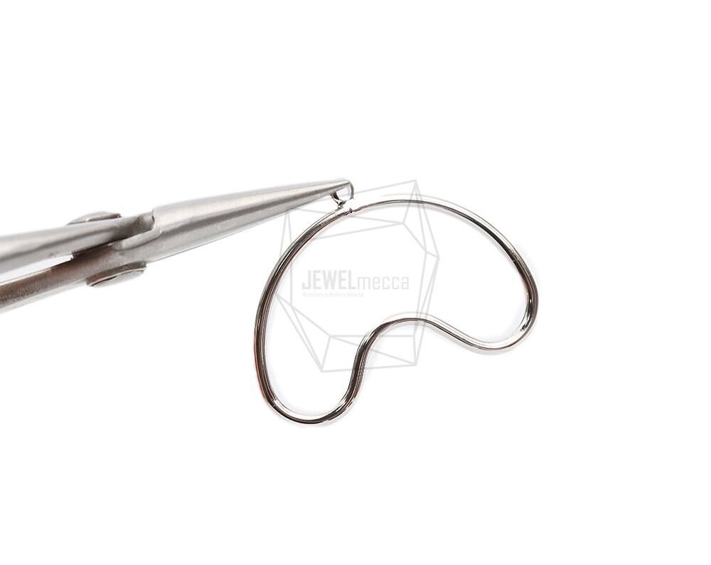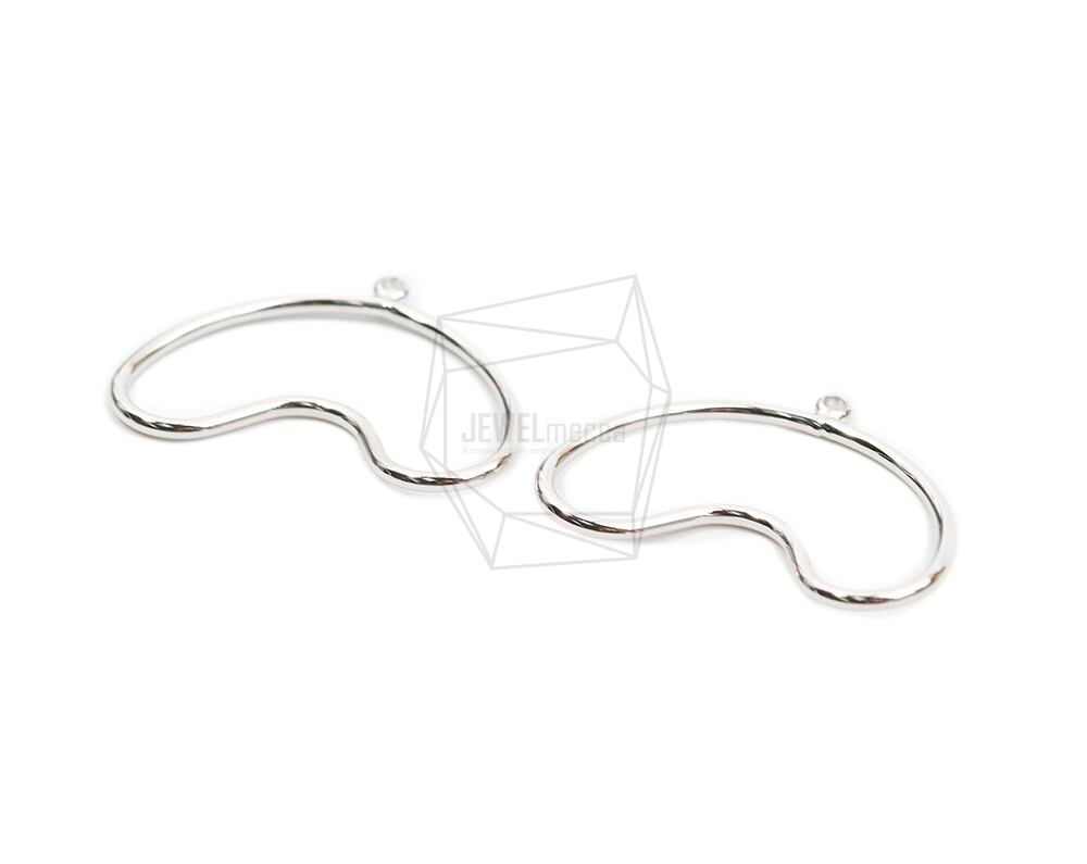 PDT-2566-R/2PCS/Wave Line Pendant/24.5mm X 32mm/Rhodium Plated Over Brass