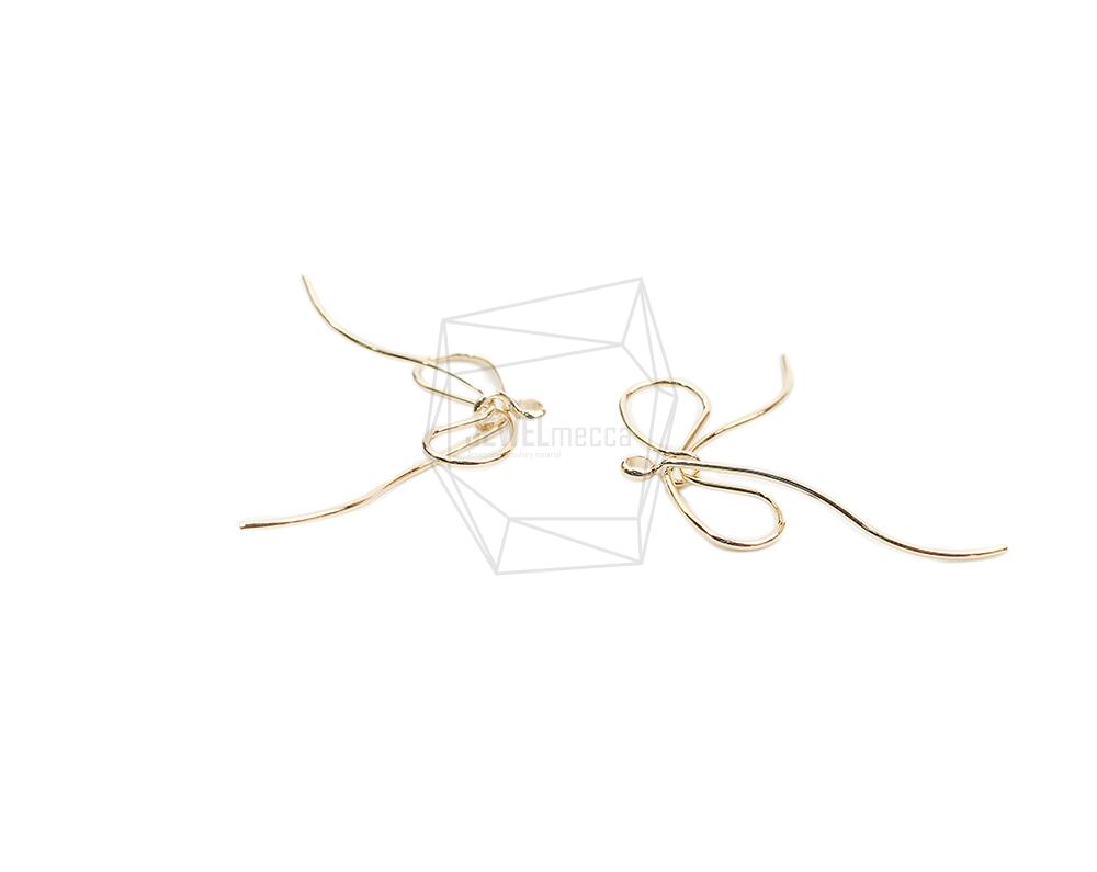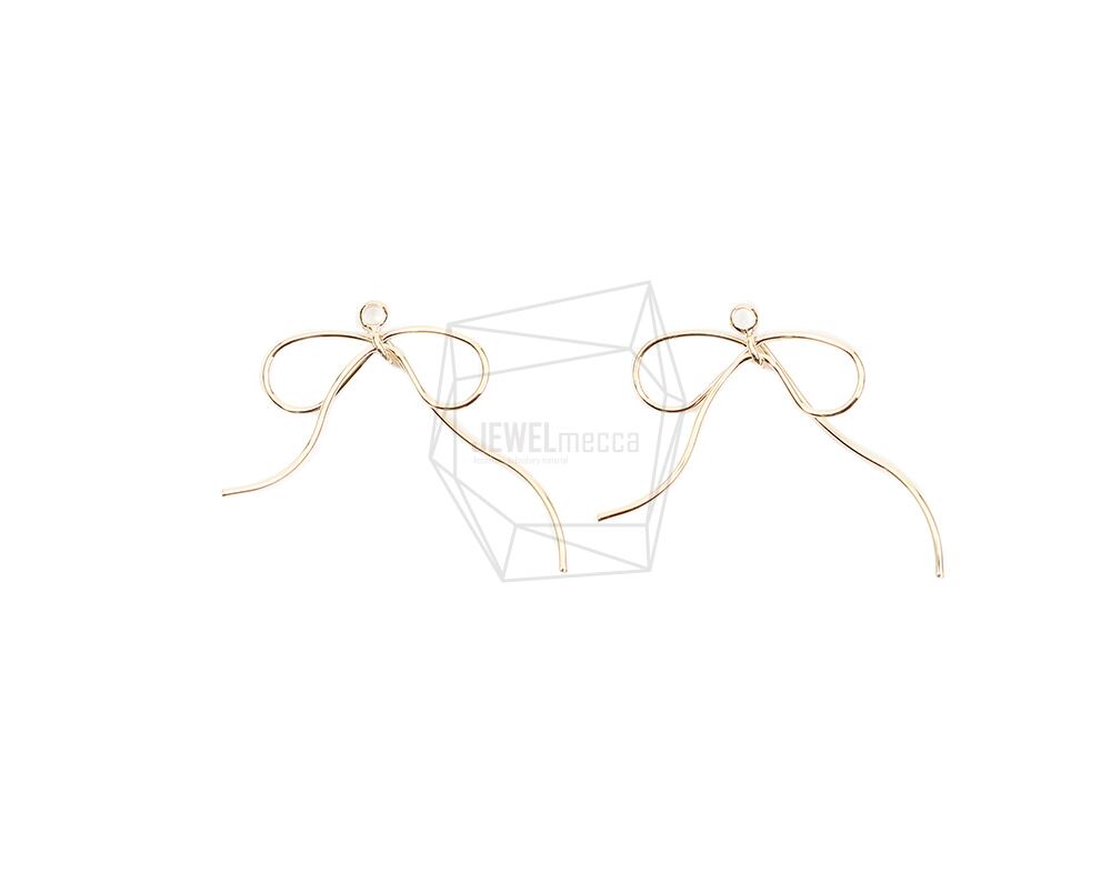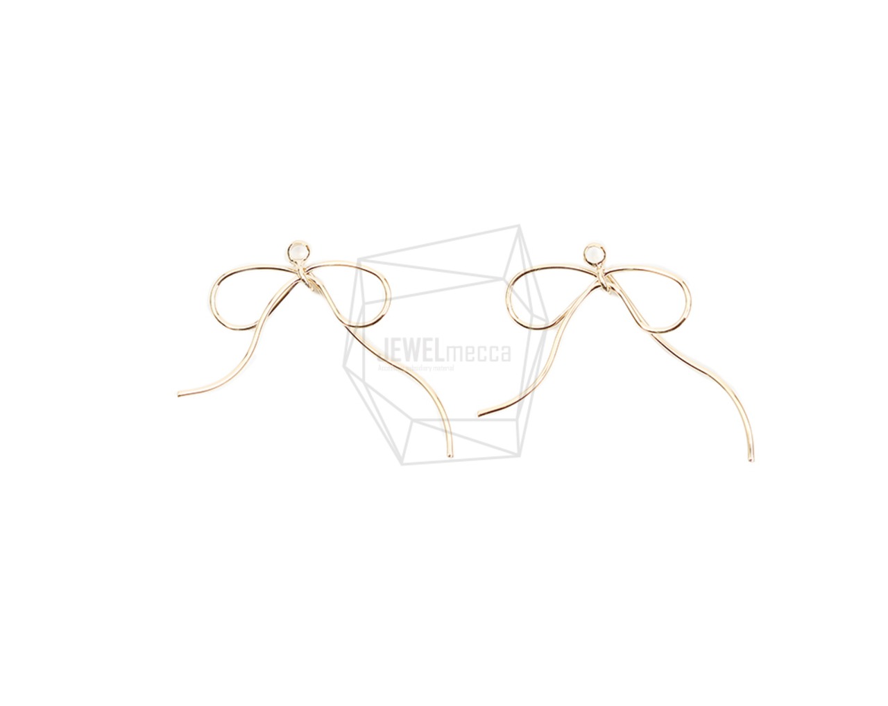 PDT-2567-G/2PCS/Rope Ribbon Pendant/24mm X 32mm/Gold Plated Over Brass