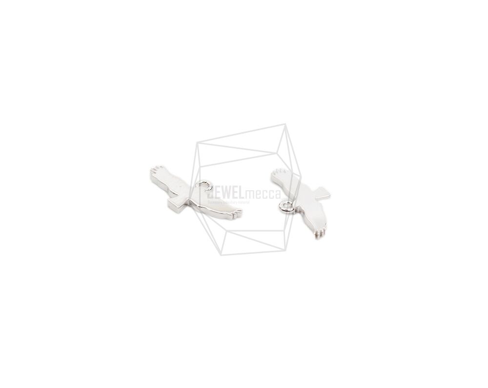 PDT-2570-R/2PCS/Bird Pendant/7mm x 14.4mm/Rhodium Plated over Brass
