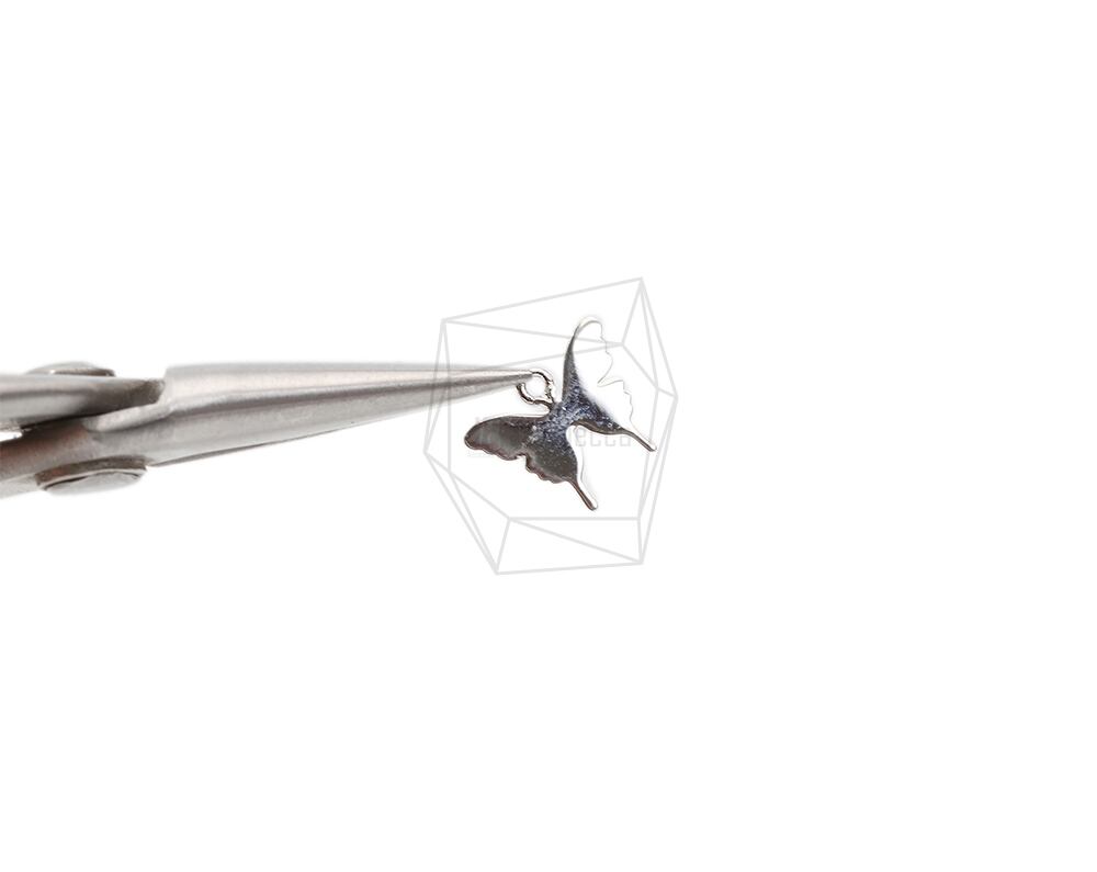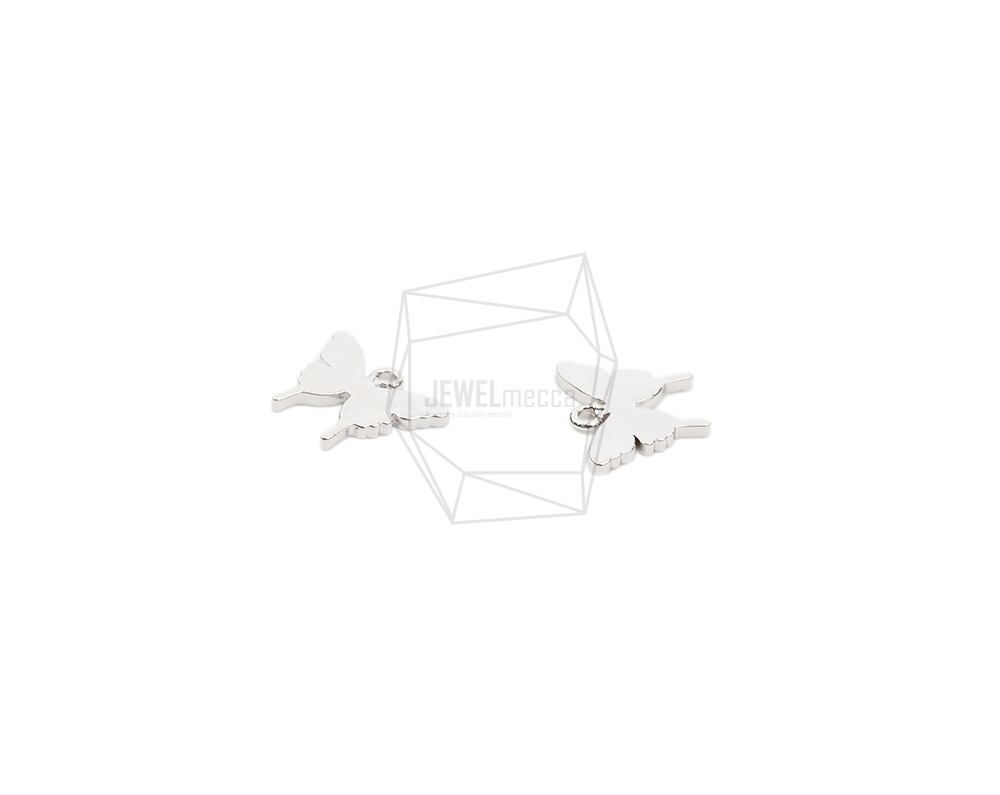 PDT-2571-R/2Pcs-Flat Butterfly Shadow Pendant/ 9mm x 11.3mm /Rhodium Plated over brass