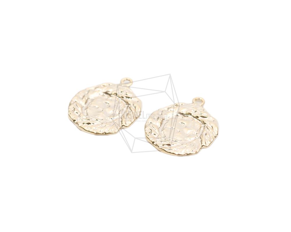 PDT-2572-MG/2pcs/Round Cute Pattern Pendant/17mm x 21.6mm/Matte Gold Plated Over Brass