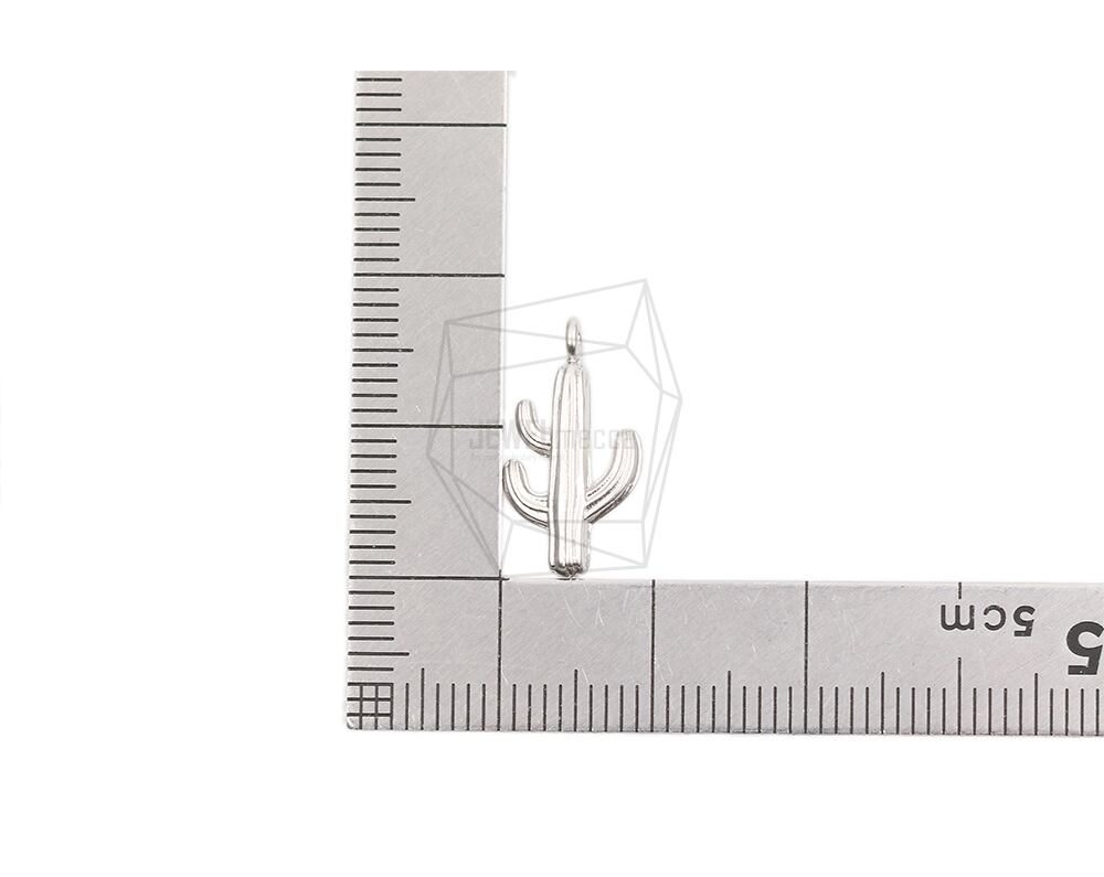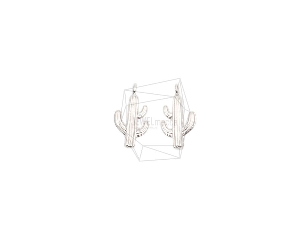 PDT-2573-MR/2PCS/Cactus Pendant/9.3mm x 17mm/Matte Rhodium Plated over Brass