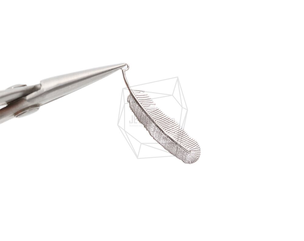 PDT-2574-MR/2Pcs-Leaf Pendant/ 8mm x 30mm/Matte Rhodium Plated Over Brass