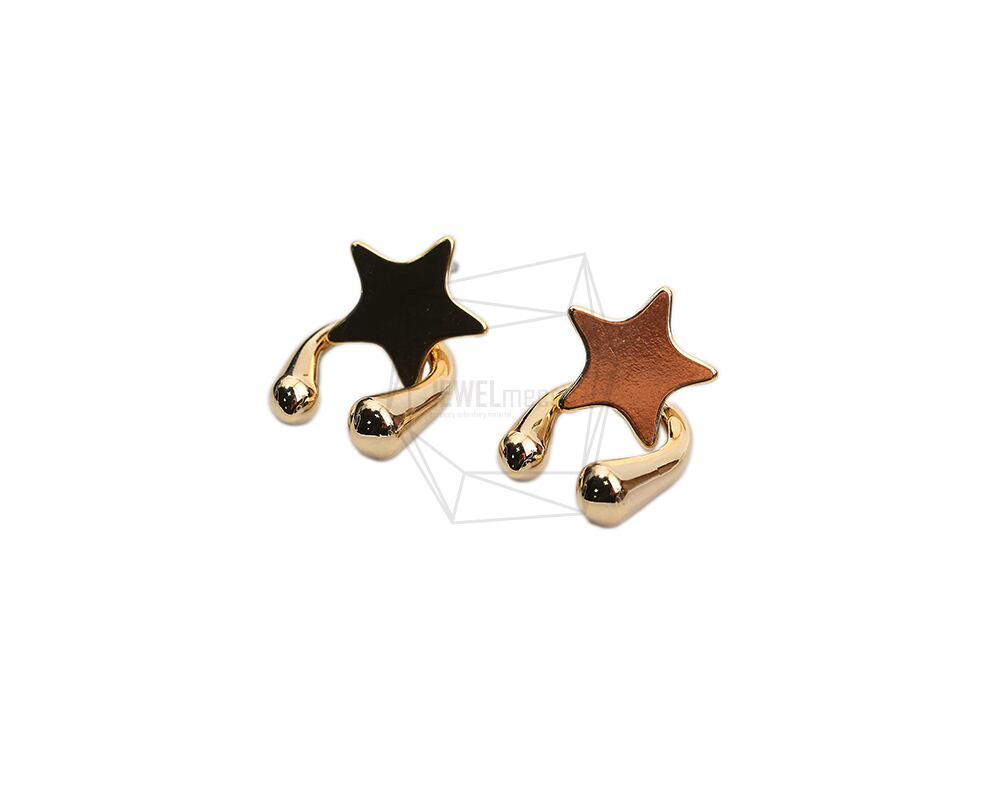 ERG-2036-G/2PCS/Stars Earring /11.7mm x 21.3mm /Gold Plated over Brass,Stainless Post