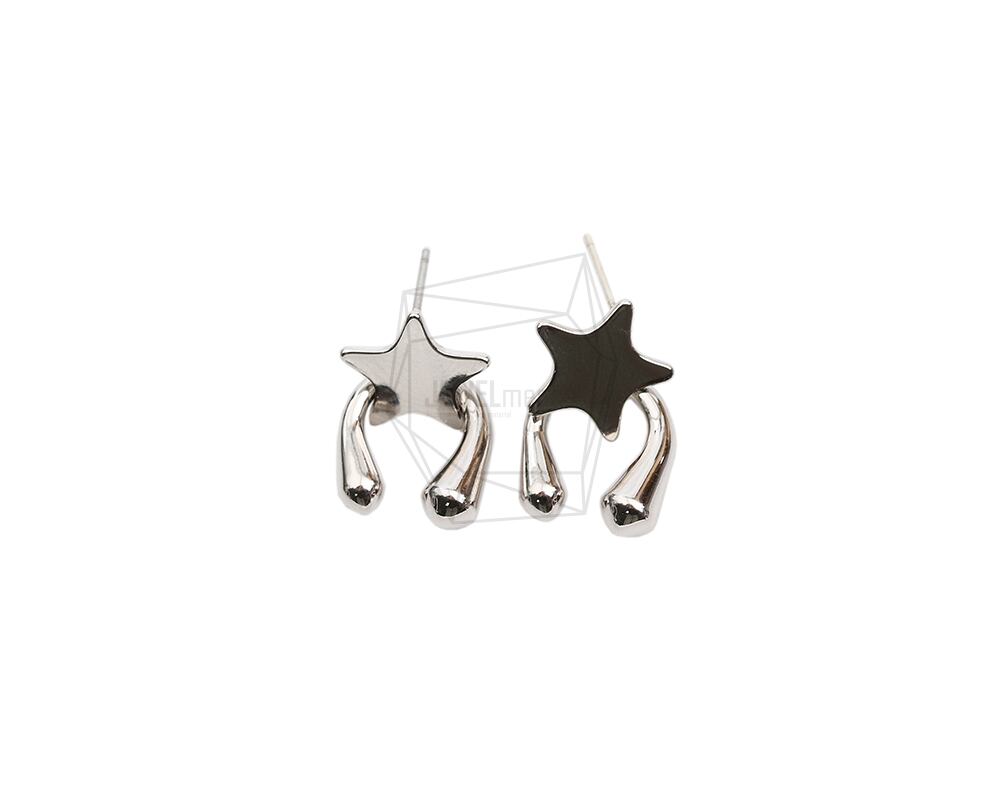 ERG-2036-R/2PCS/Stars Earring /11.7mm x 21.3mm /Rhodium Plated over Brass,Stainless Post